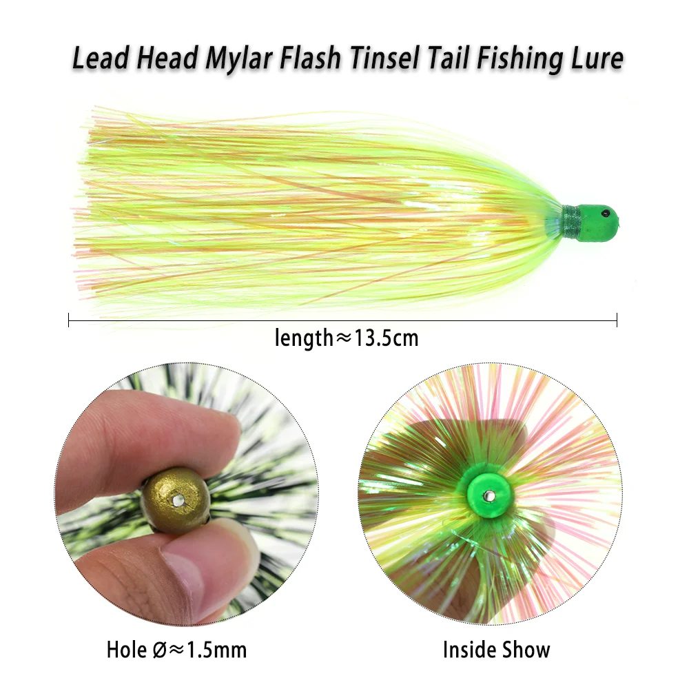 Cabeza de plomo Mylar Flash oropel cola señuelo de pesca