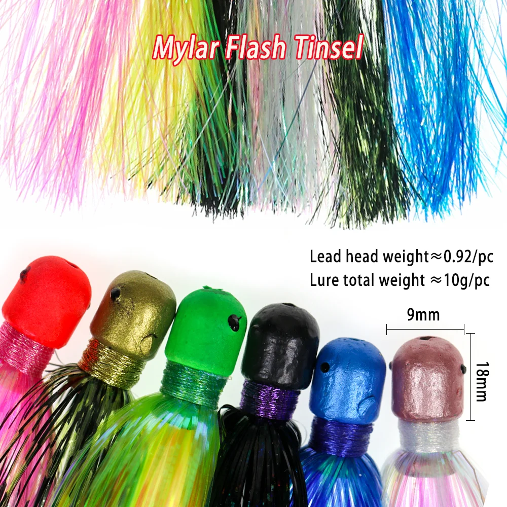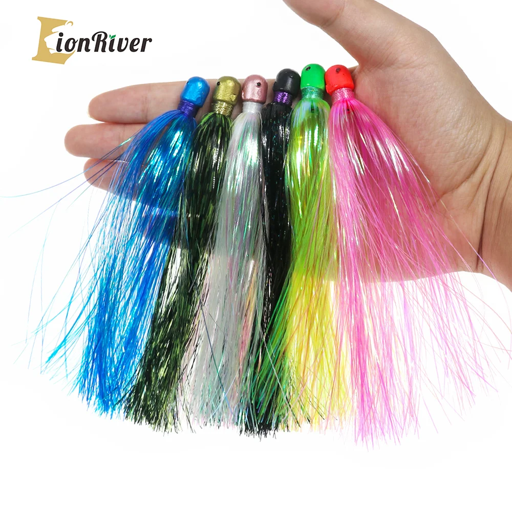Cabeza de plantilla pesada de Lion River, Flash de Mylar, señuelo de pesca de cola, cebo, falda intermitente, señuelo, accesorios de aparejos de pesca de agua salada