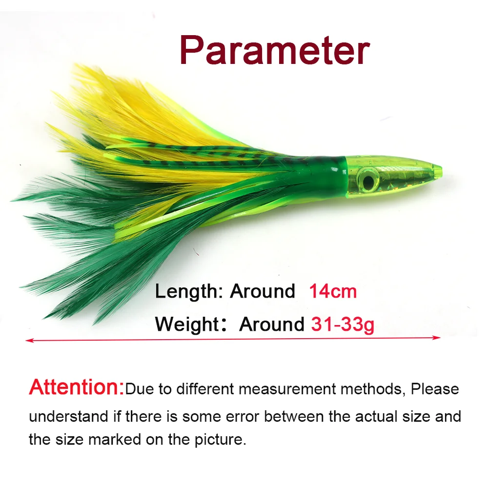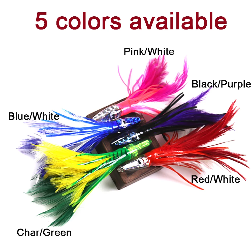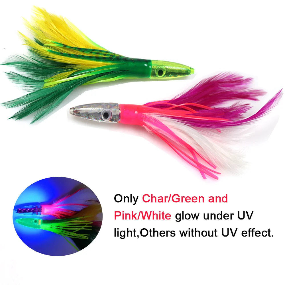 Falda de plumas de León River de 2 piezas, señuelo de pulpo duro, señuelo de calamar, cebo de arrastre para pesca en aguas profundas, aparejos de pesca