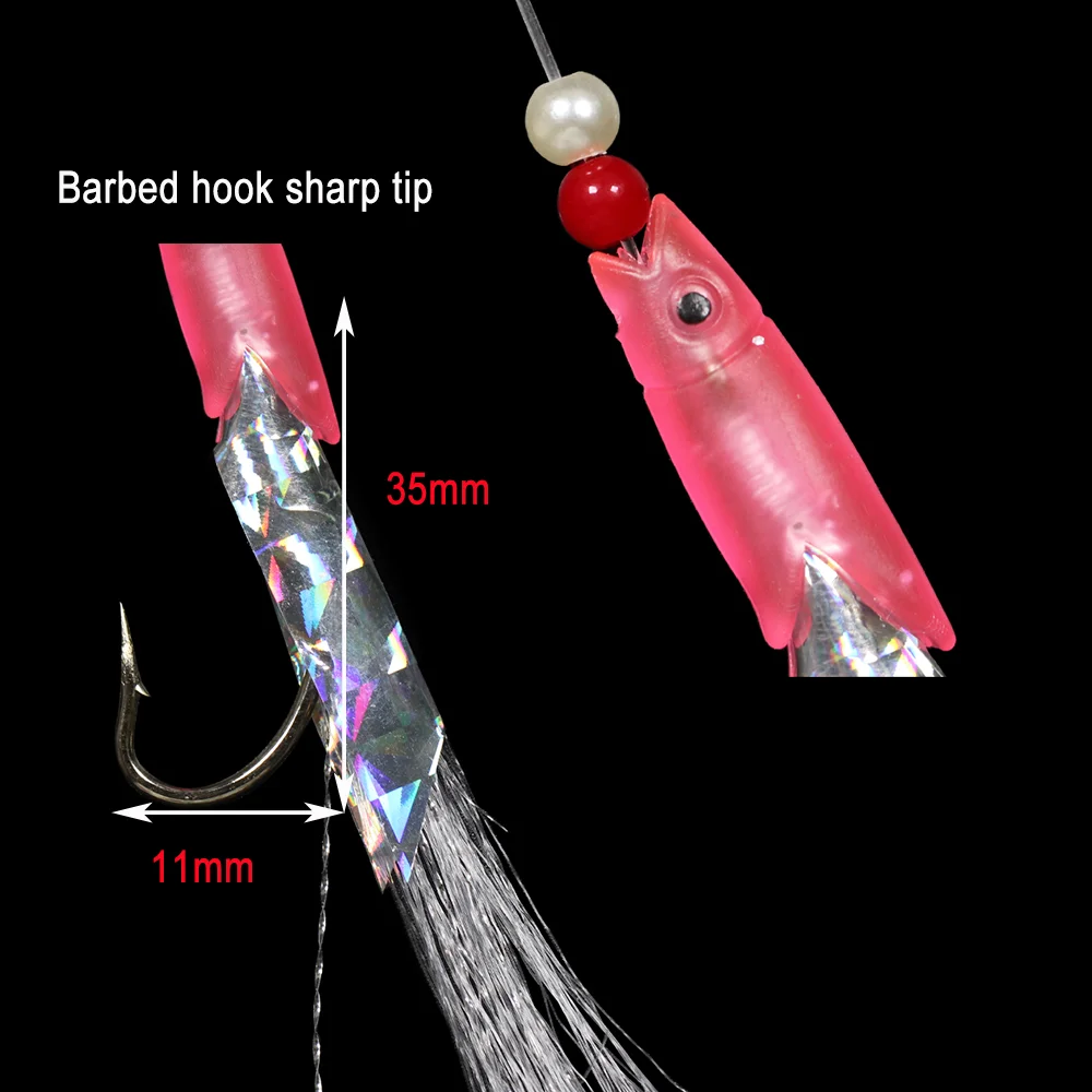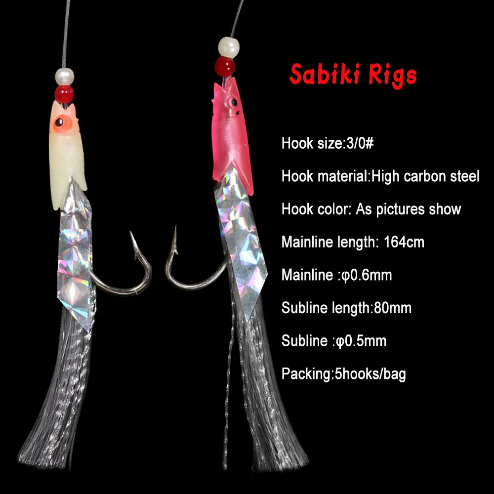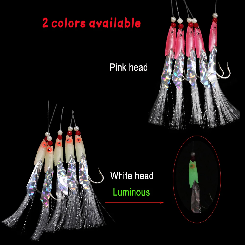 Lionriver 2 bolsas Sabiki Rigs Señuelos de Pesca blandos artificiales de agua salada cebo de mar luminoso aparejos de cuerda anzuelos de púas señuelos de oropel