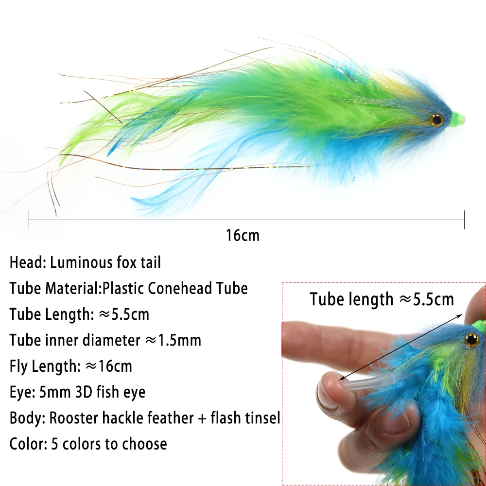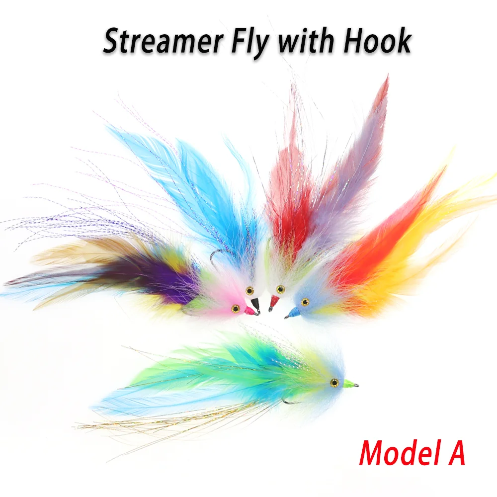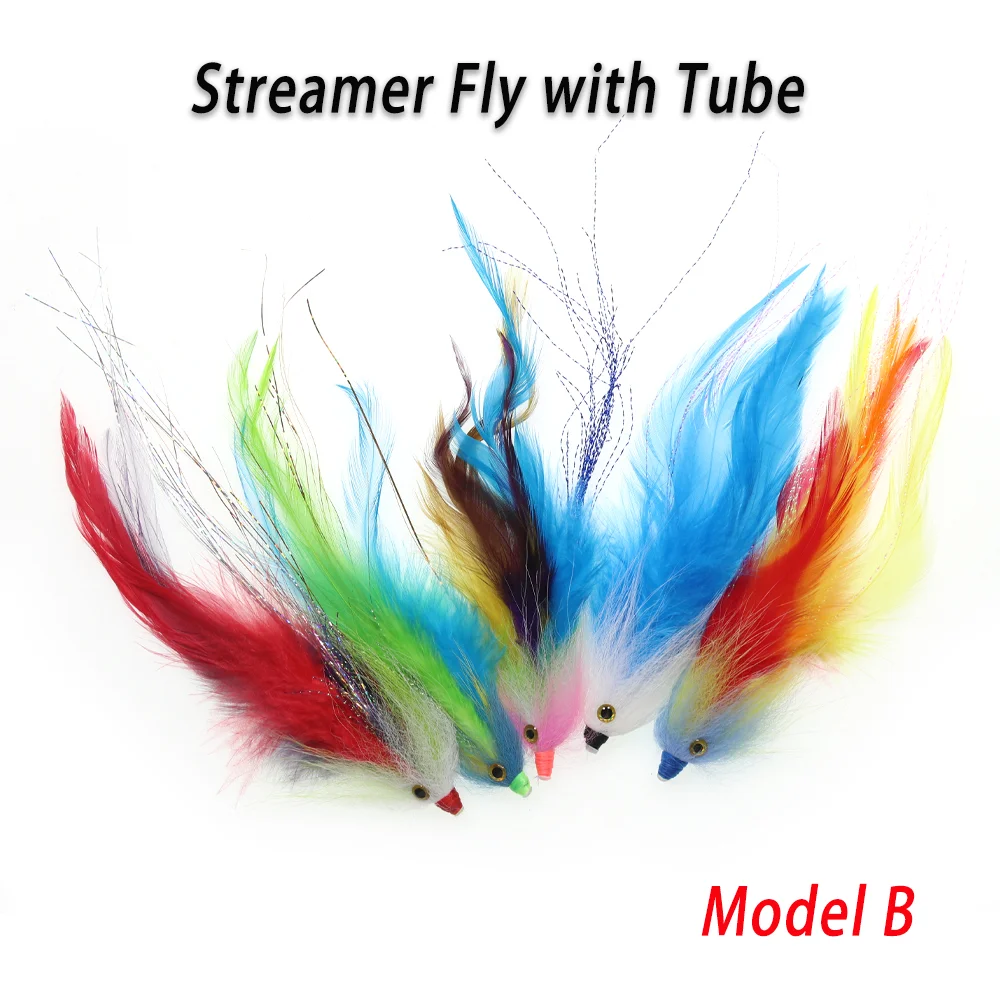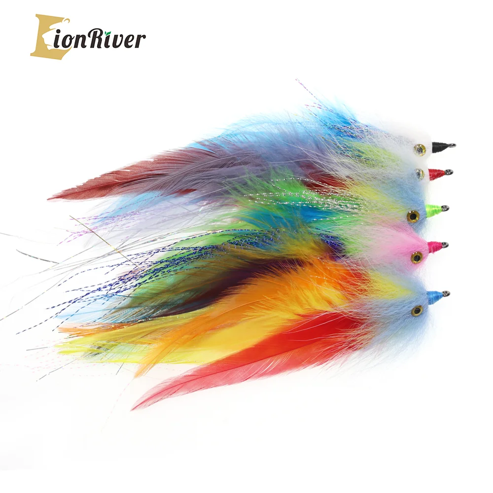 Streamer Lion River vuela con gancho, tubo, Cabeza de Acero, salmón, Lucio, trucha, simulación, moscas, señuelo Artificial, cebo para pesca en agua salada
