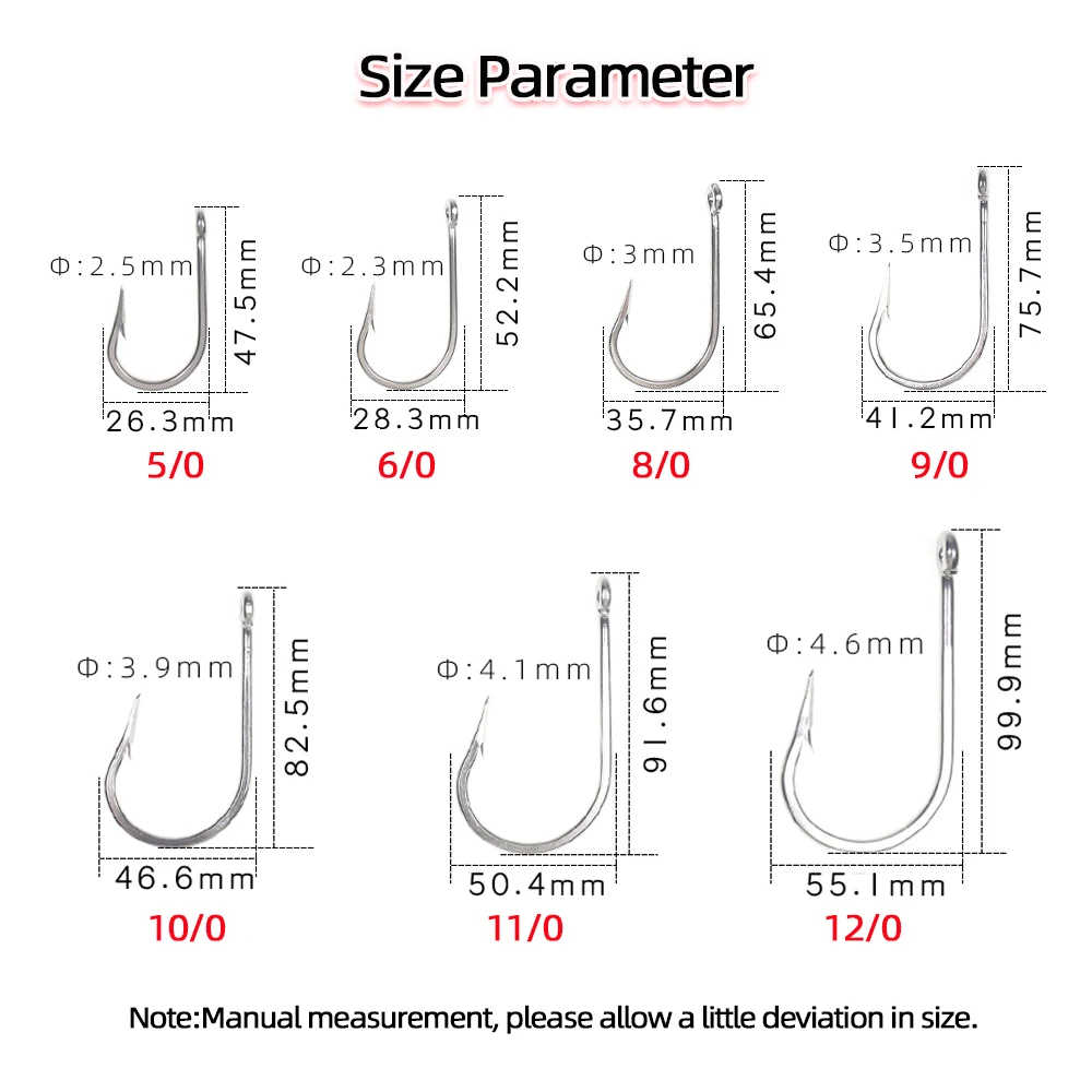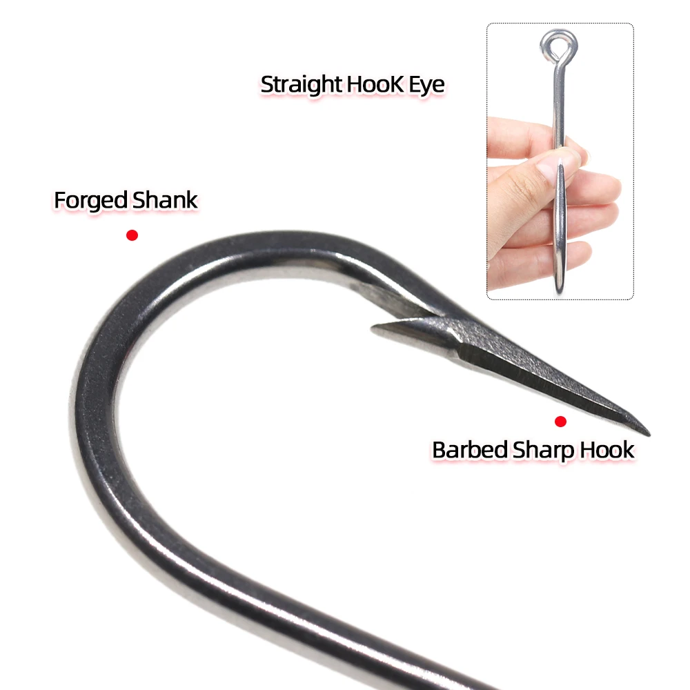 LIONRIVER Tamaño5/0-13/0 Acero inoxidable Gran juego Anzuelo de pesca Tono Cebo de tiburón Anzuelos de alta resistencia Pesca con curricán en agua salada