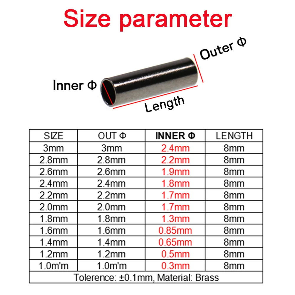 LIONRIVER-Tubo de pesca de cobre redondo negro, tubo de alambre de pesca, mangas de engarce, conector, accesorios de línea de pesca, herramienta