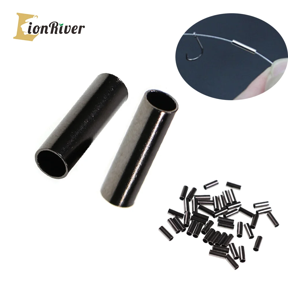 LIONRIVER-Tubo de pesca de cobre redondo negro, tubo de alambre de pesca, mangas de engarce, conector, accesorios de línea de pesca, herramienta