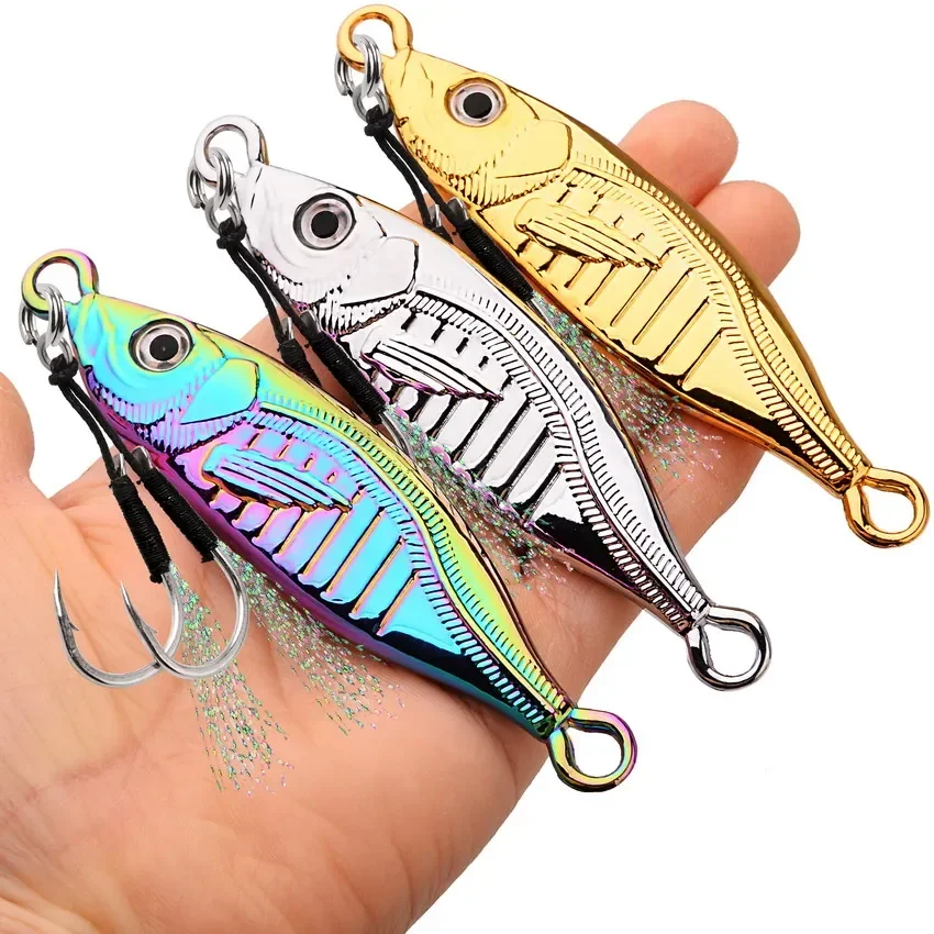 Jurel de cebo múltiple realista y acabado. Como Plantilla de metal, es compacto y tiene una acción de caída y bobinado de descarga.