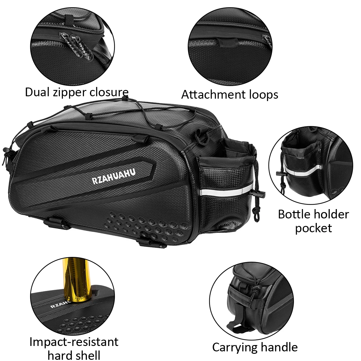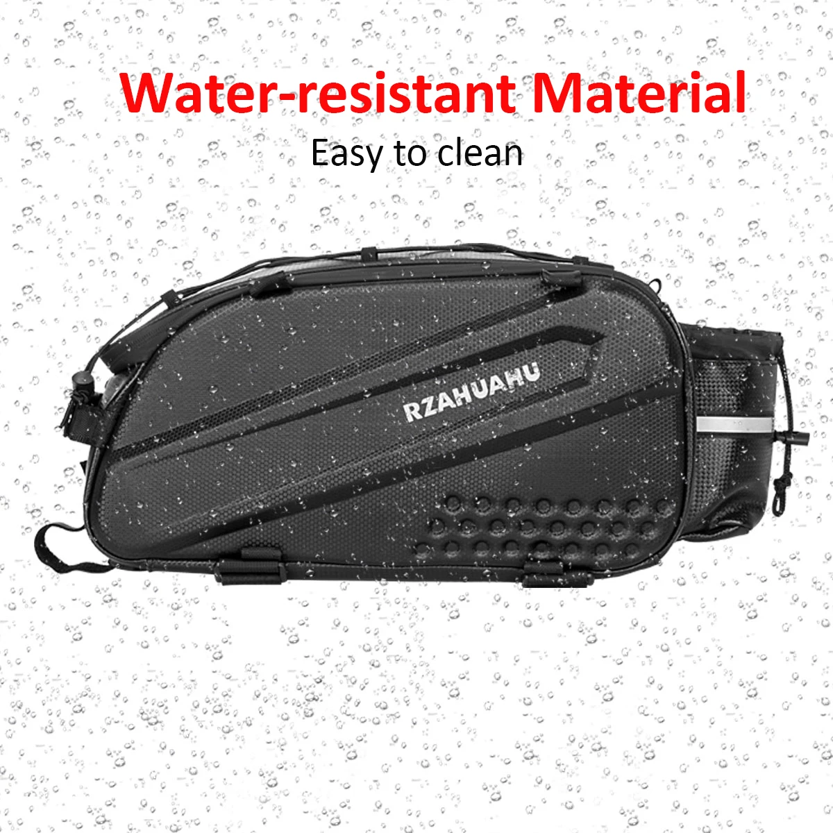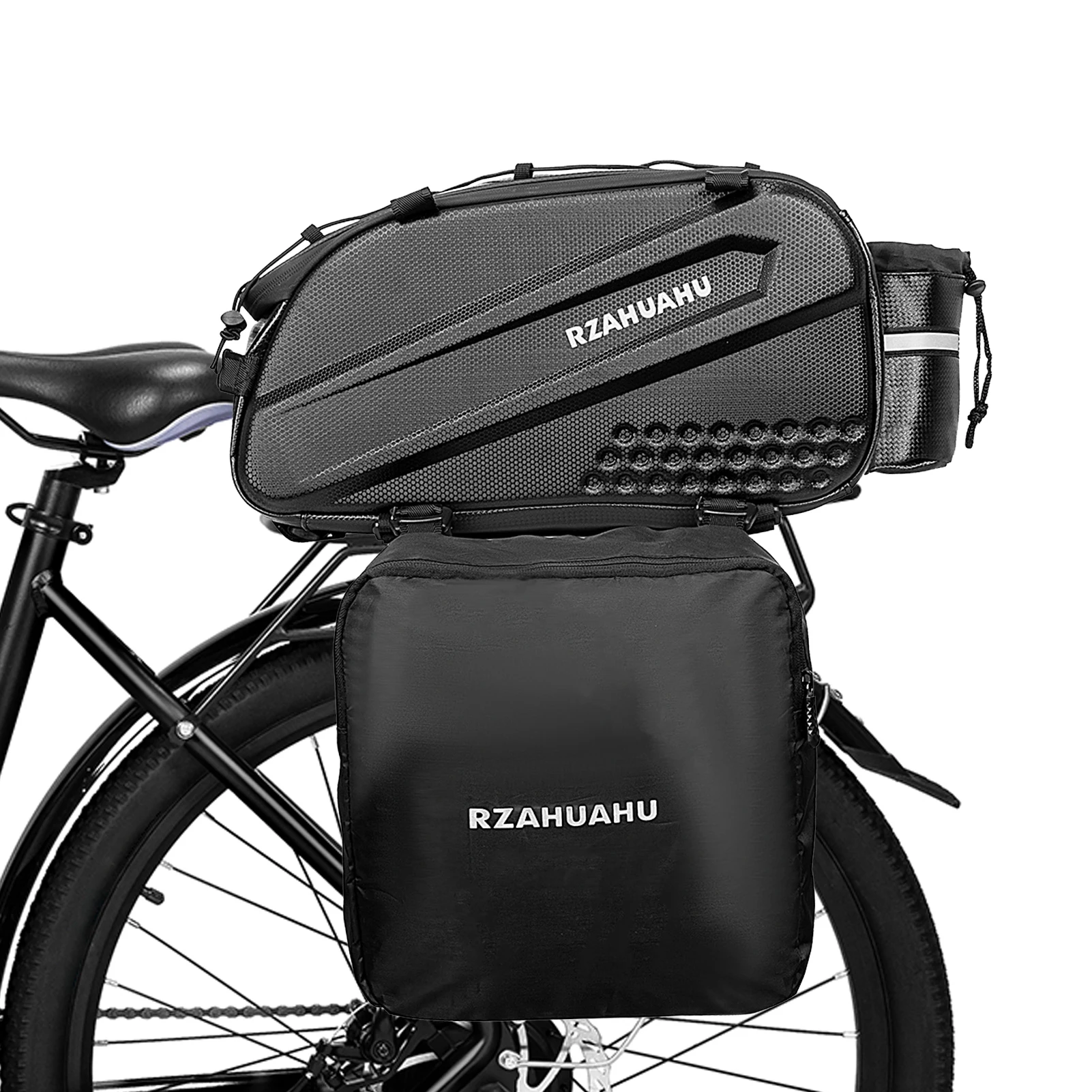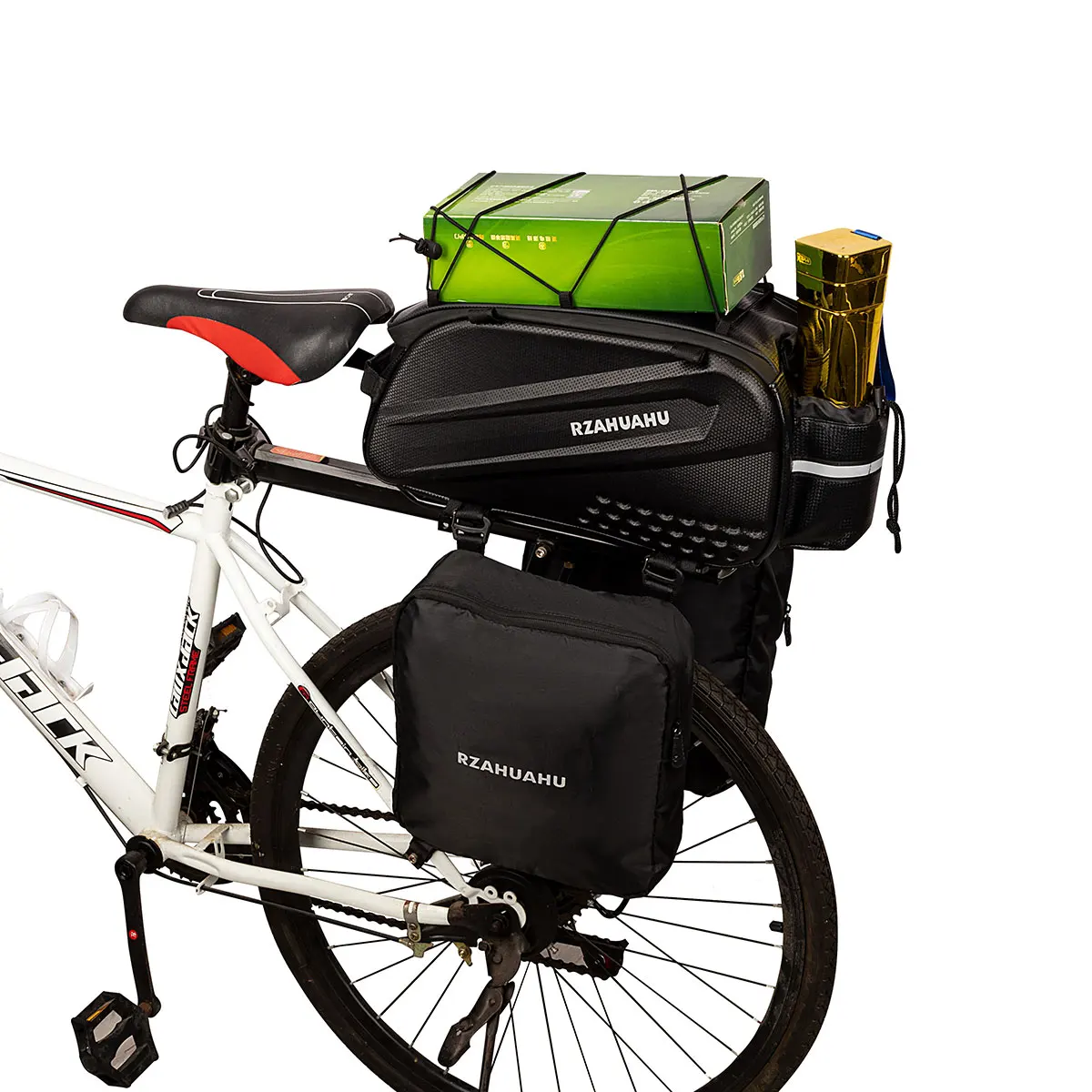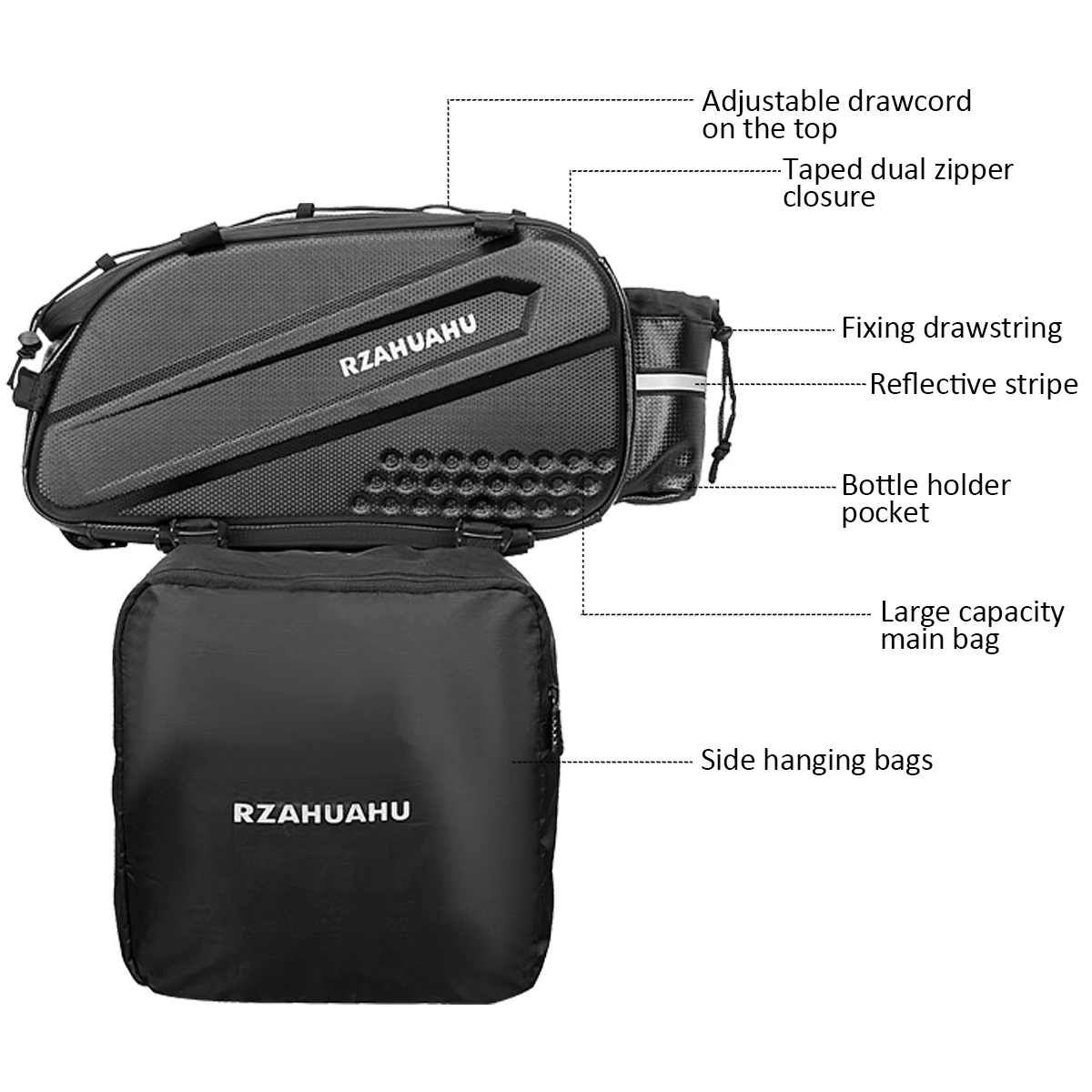 Este juego de bicicletas incluye una bolsa principal para portaequipajes trasero y dos bolsas laterales para colgar para proporcionar una gran capacidad de almacenamiento para recorridos de larga distancia.Fabricadas con material resistente al agua de primera calidad, las bolsas son resistentes a la abrasión y duraderas, una excelente opción para los entusiastas del ciclo.
