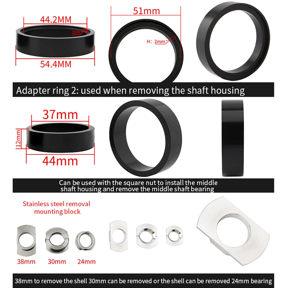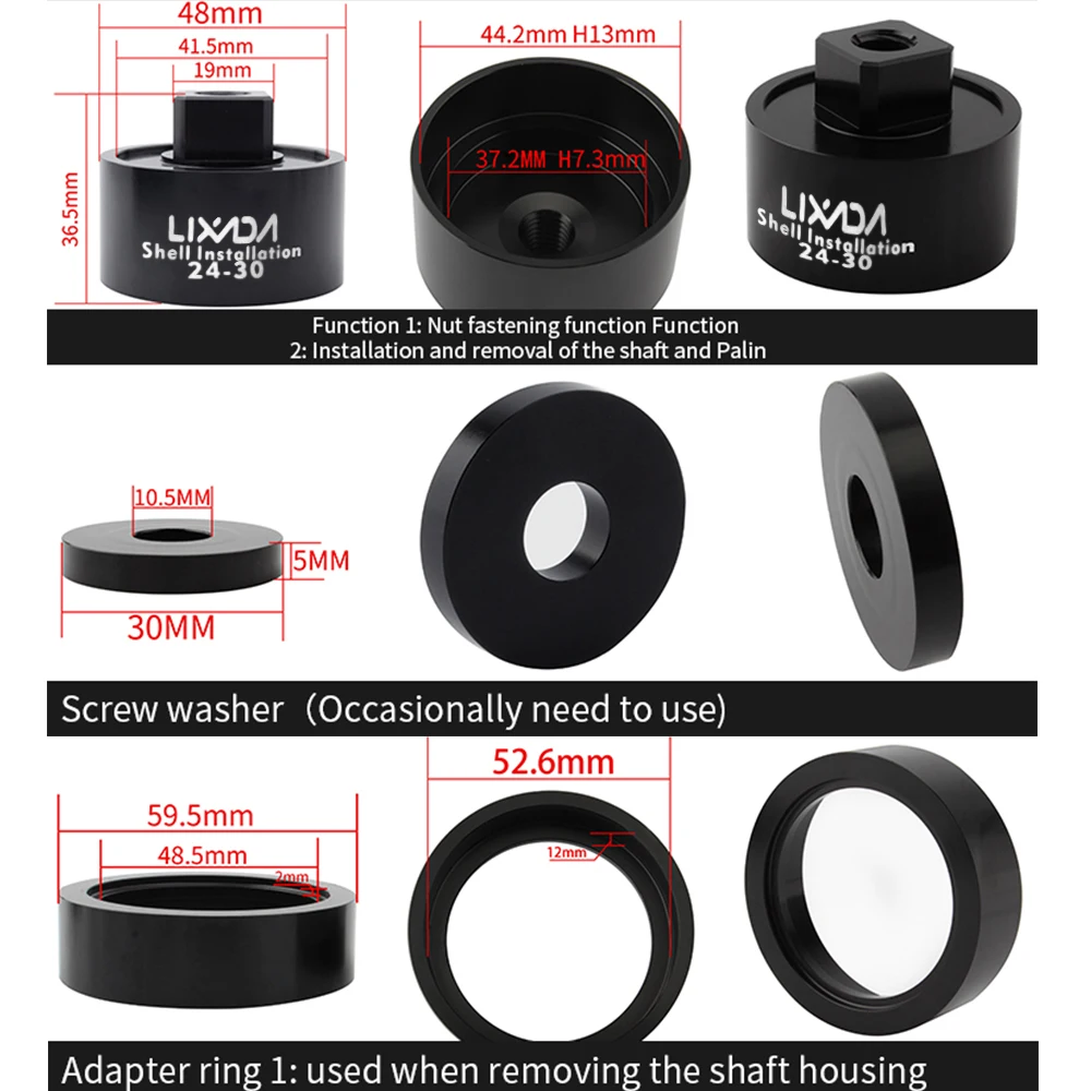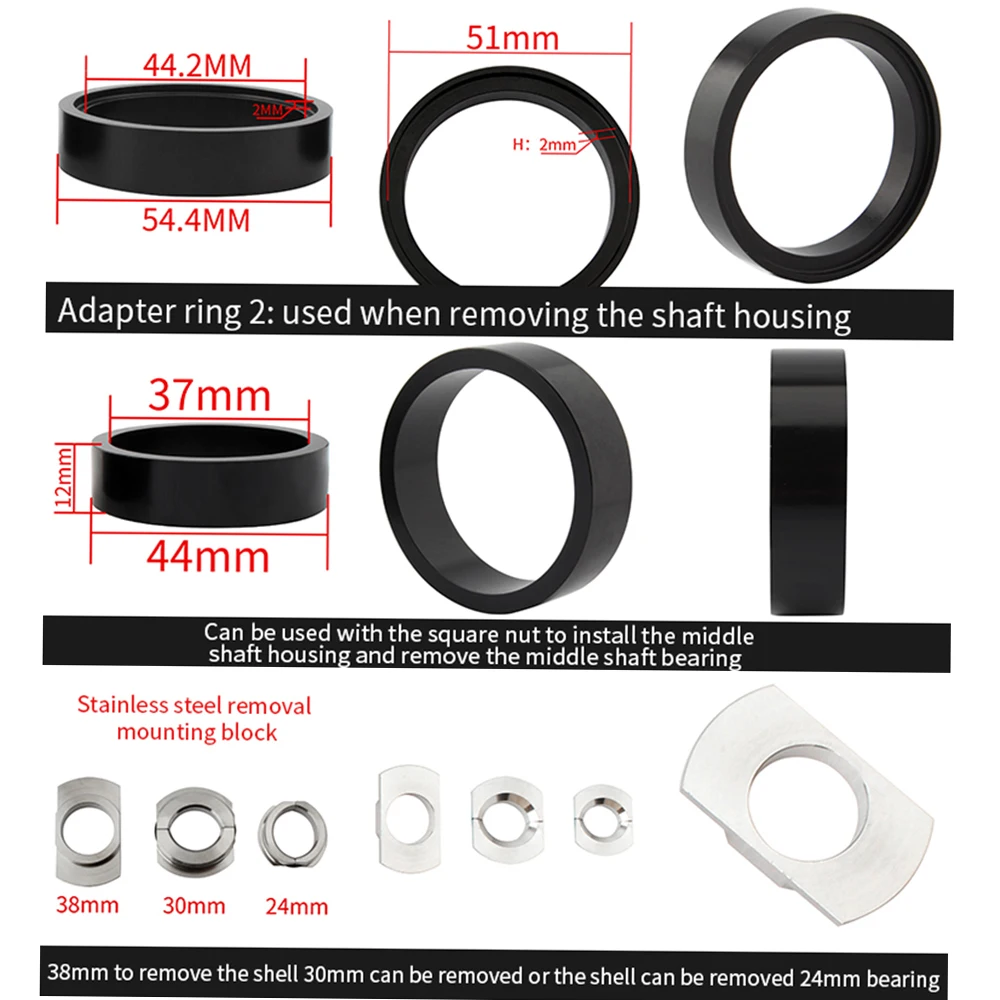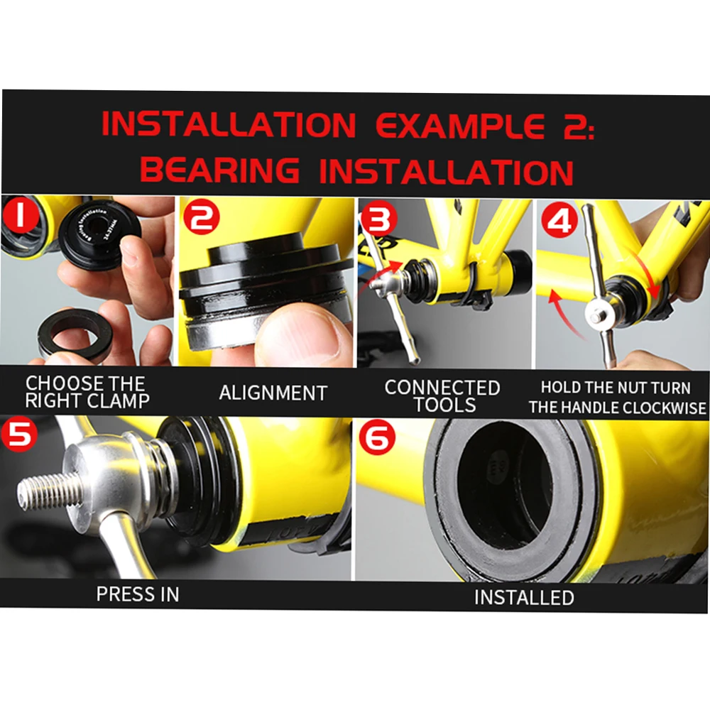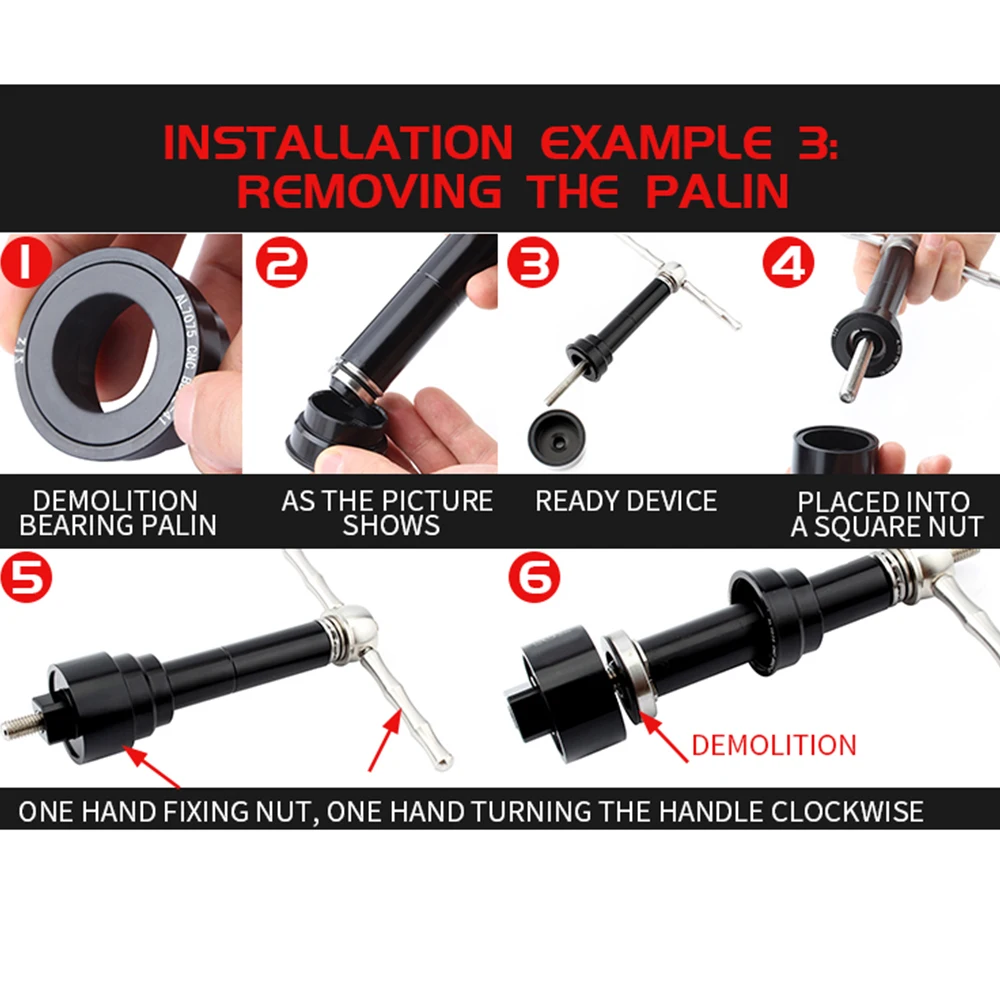 Adecuado para quitar los soportes inferiores del tipo de ajuste a presión BB86/BB30/BB91/BB92/PF30 e instalar la mayoría de los rodamientos huecos del soporte inferior.