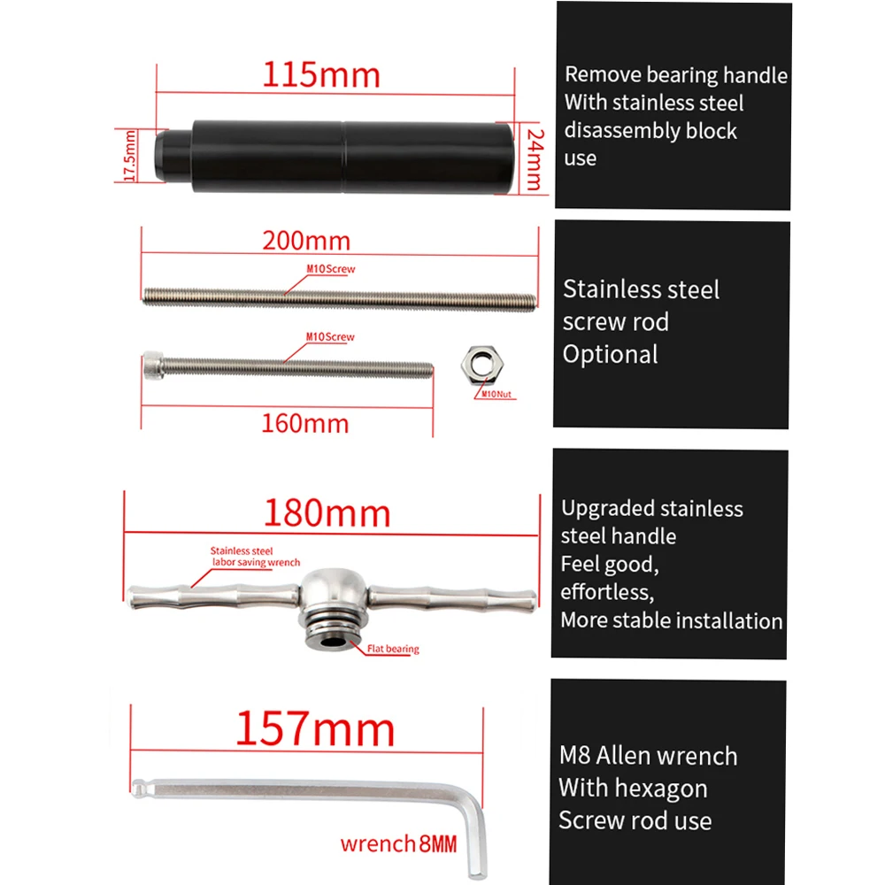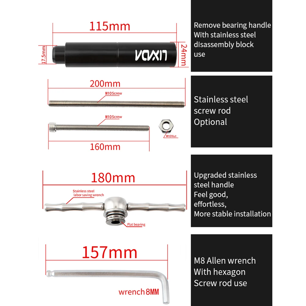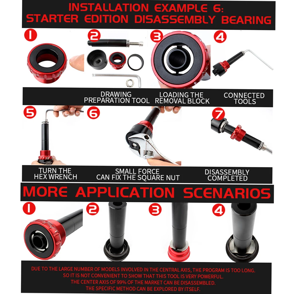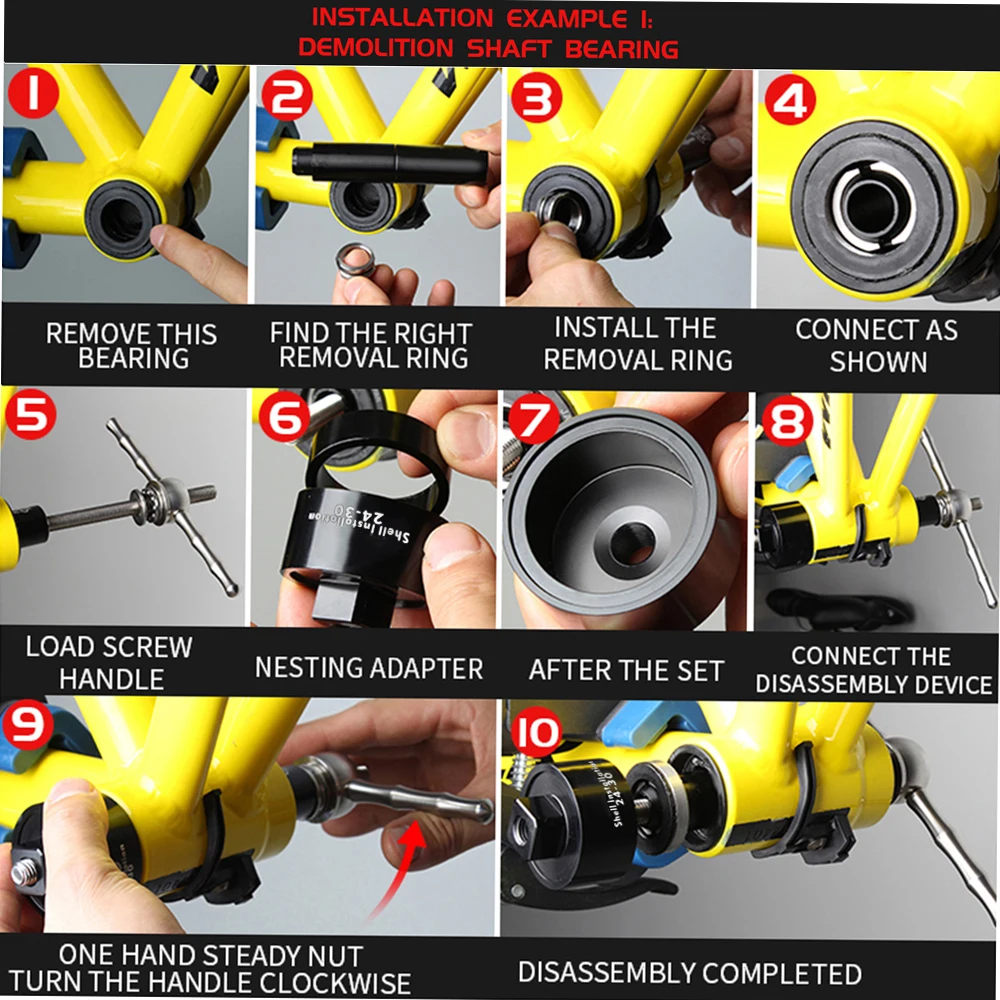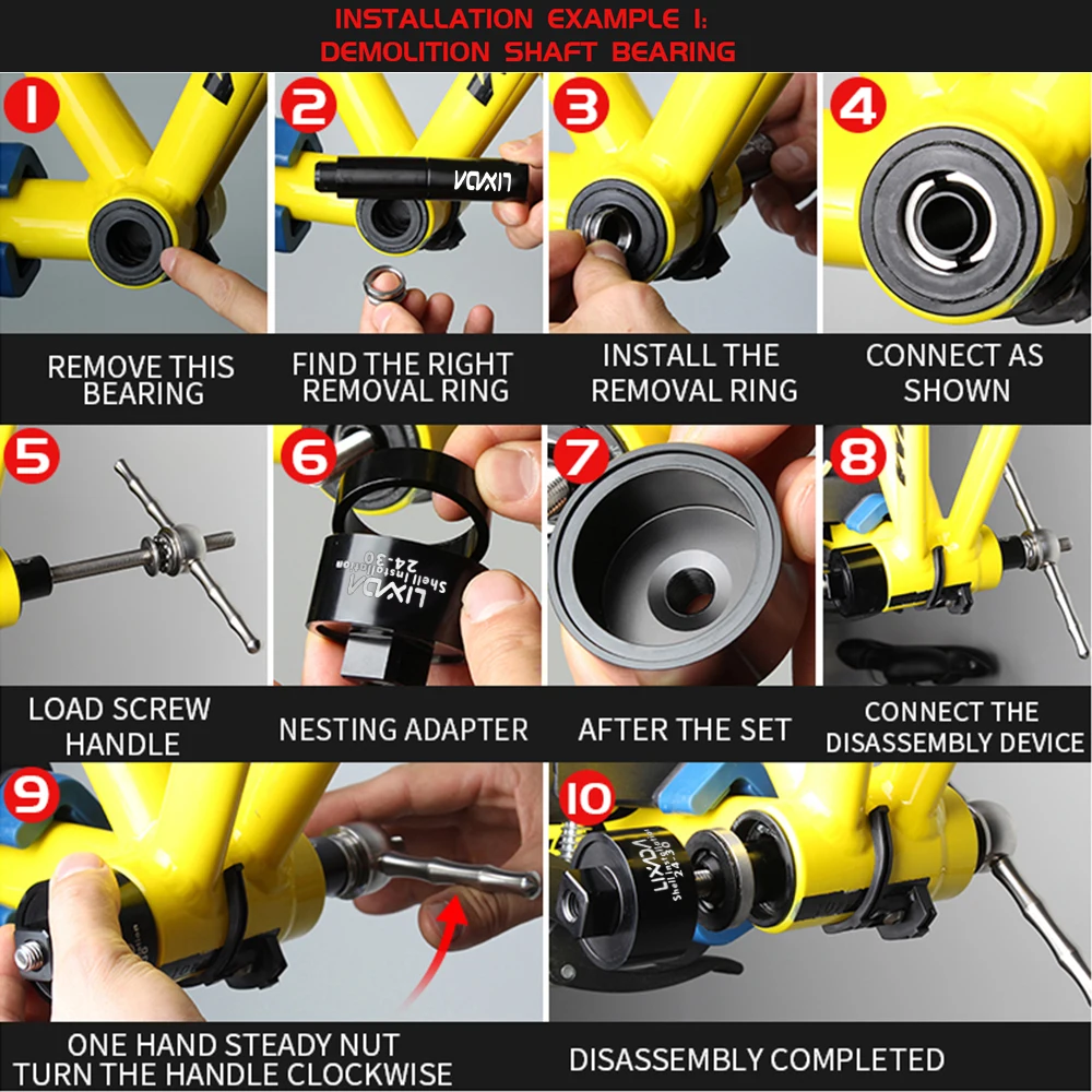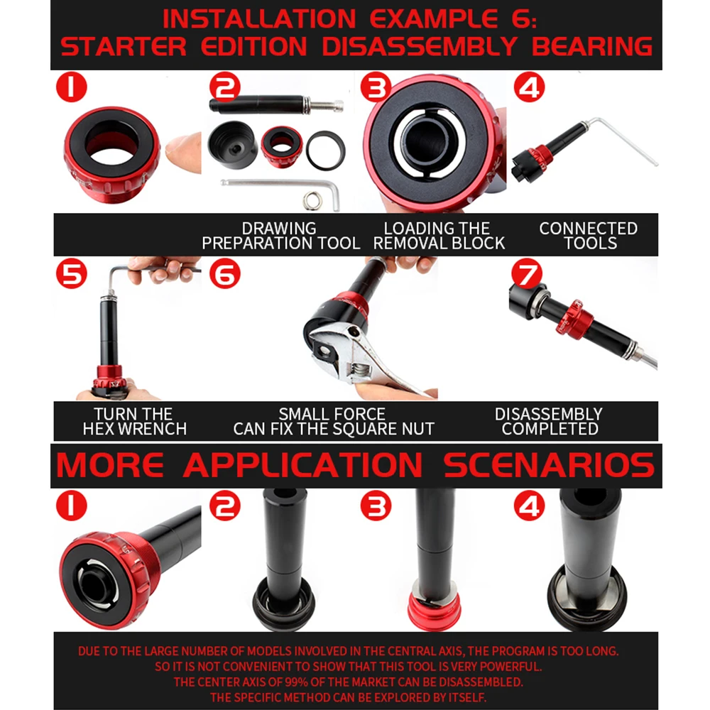 Adecuado para quitar los soportes inferiores del tipo de ajuste a presión BB86/BB30/BB91/BB92/PF30 e instalar la mayoría de los rodamientos huecos del soporte inferior.