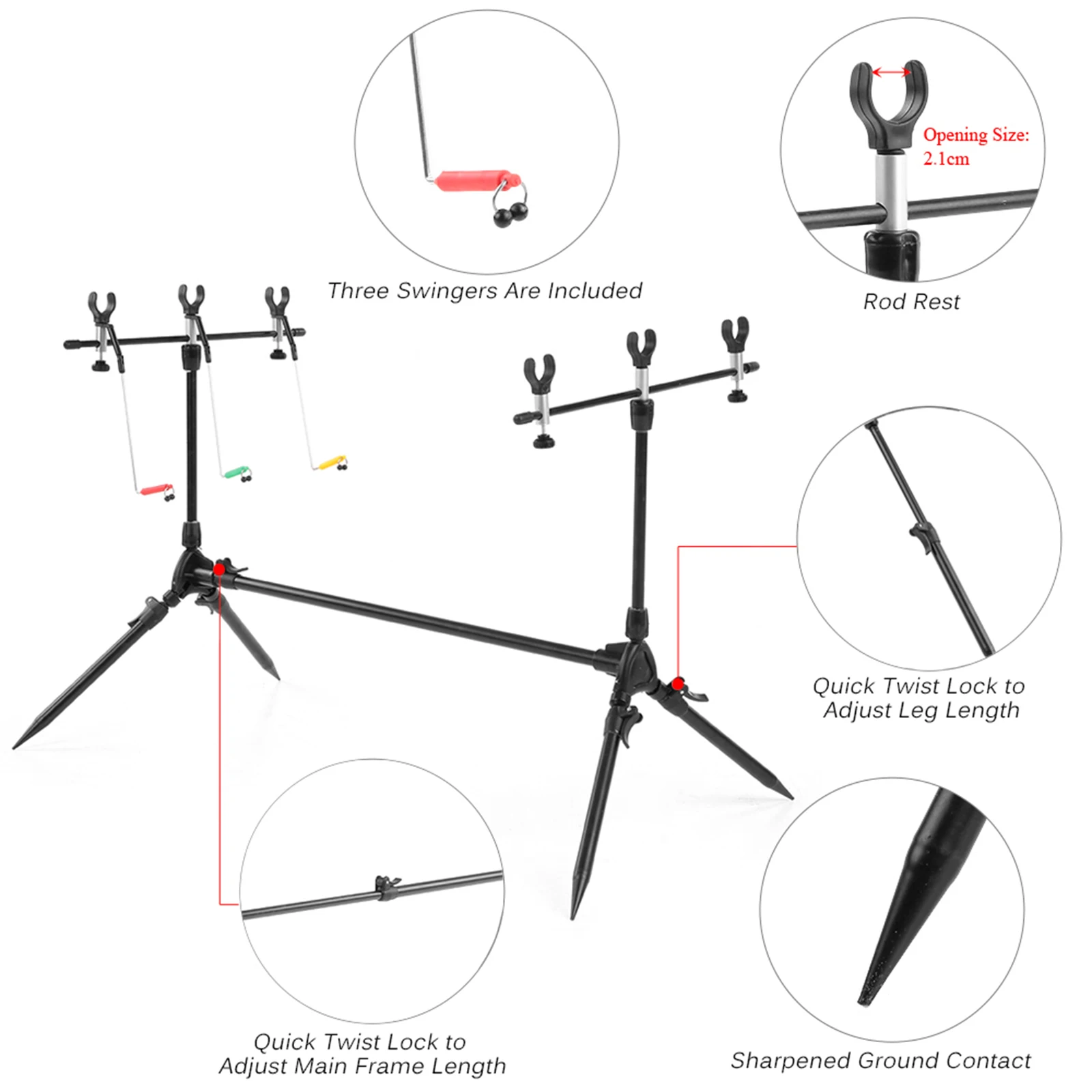 Esta caña liviana está diseñada para usarse para lugares de pesca menos accesibles y donde no es posible el uso de palos bancarios.Se guarda fácilmente con una bolsa de lona duradera y se monta rápidamente, el soporte para cañas le permite nadar rápidamente.