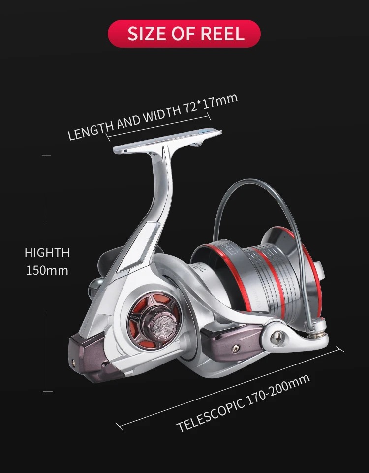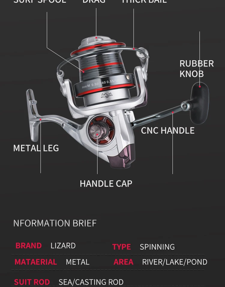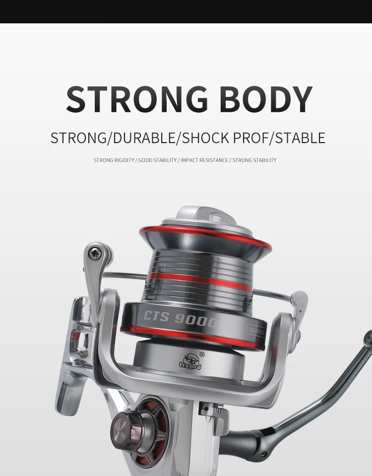 Marca de lagarto, carrete de metal completo de tamaño 9000/10000/12000, carrete de pesca de mar grande, Jigging, curricán, lanzamiento de tiro largo para carpa, agua salada