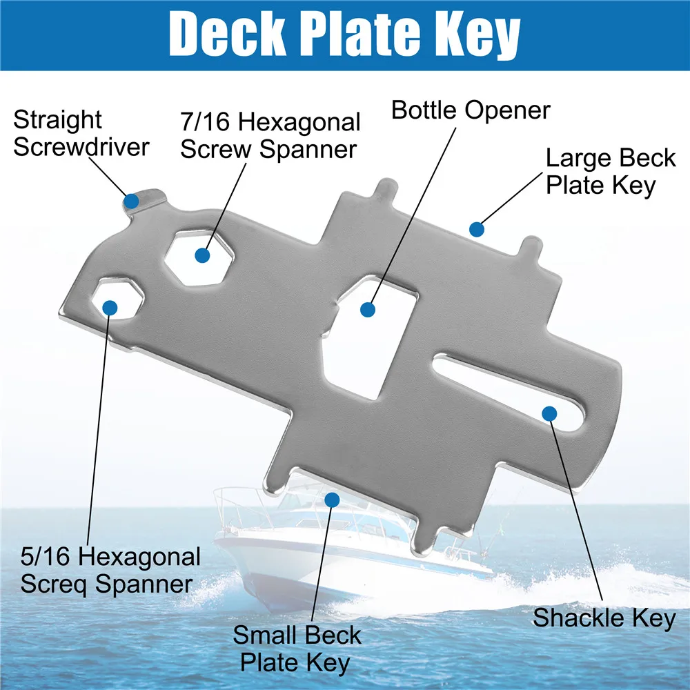 2. Las llaves universales de la cubierta de la placa son adecuadas para la mayoría de las cubiertas de relleno de la cubierta del barco, incluyendo ranuras, orejetas, agujeros espaciadores y estrellas.