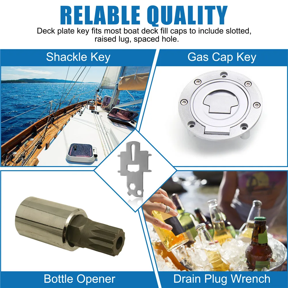 4. Las llaves de la placa de cubierta son adecuadas para la mayoría de las tapas de llenado de barcos, incluidas las ranuras, las orejetas elevadas, los orificios espaciadores y la mayoría de los tanques de combustible y agua.