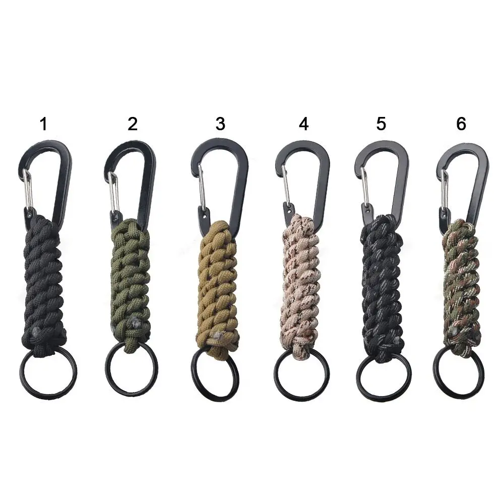 Nuevo llavero de aleación de aluminio de alta calidad para exteriores, Kit de supervivencia para acampar, cuerda de Paracord, material de la hebilla de Montañismo: Alambre de aluminio y acero, material del llavero: acero inoxidable, material de la cuerda del paraguas: nailon y polipropileno, Color:6 colores Longitud total: 15cm Estilo: a su elección Cantidad: 1 pieza El paquete incluye: 1 pieza colgante de llavero de Paracord Aviso: 1,1 cm=10Mm=0,39 pulgadas. 2. Por favor, permita un error de 1-2cm debido a la medición manual y asegúrese de que no le importe antes de realizar el pedido. 3. Por favor, comprenda que los colores pueden existir aberraciones cromáticas debido a la diferente colocación de las imágenes.