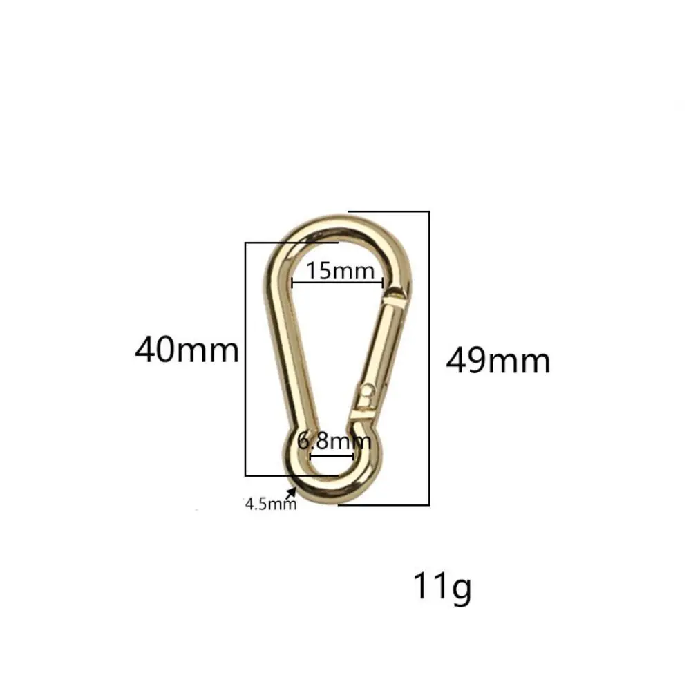 Nuevo y de alta calidad. Fresco, diseño novedoso, uso duradero. Diseño de clip de enlace de resorte. Ideal para mosquetón, camping, senderismo, portabotellas para actividades al aire libre. Material: aleación ligera de zinc. Tamaño: 35*19mm/1,38*0,75 pulgadas, 39*19mm/1,54*0,75 pulgadas, 49*19mm/1,93*0,75 pulgadas.(L * W) Color: oro, negro, plata y bronce Cantidad: 1 pieza El paquete incluye: 1 pieza de mosquetón con botón de escalada (a su elección) Aviso: 1. Transición: 1cm=10Mm=0,39 pulgadas. 2. Permita un error de 1-2MM debido a la medición manual y asegúrese de que no le importe antes de realizar el pedido. 3. Por favor, comprenda que los colores pueden existir aberraciones cromáticas debido a la diferente colocación de las imágenes.