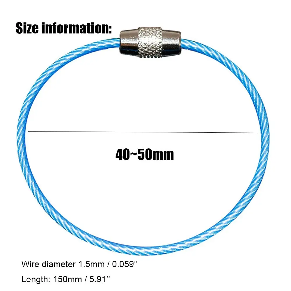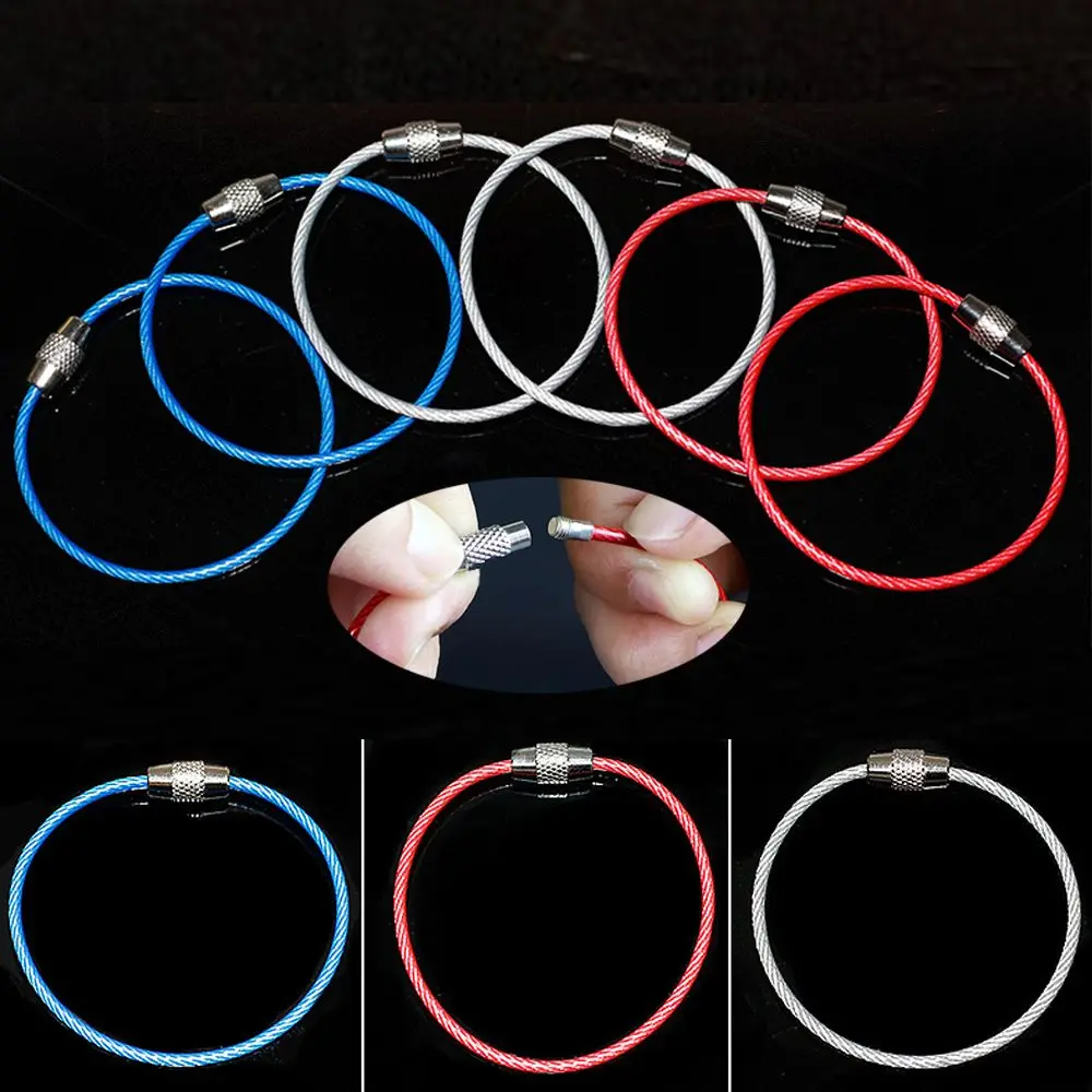 Color: mezcla aleatoria de colores. Diámetro: 5cm/2 pulgadas (aprox.) Longitud: 15 cm Material: acero inoxidable Paquete incluido: llavero de alambre de acero inoxidable de 10 piezas Características: construcción firme y fuerte, idea para hacer llavero y herramienta para colgar Adecuado para colgar linterna, llaveros, alicates y otras herramientas manuales fáciles de instalar, simplemente doble el cable y apunte al orificio del anillo y atornille el peso ligero, Tamaño Mini, fácil de llevar. Nota: 1. Permite 0,1-0,3 cm debido a diferencias de la medición manual, gracias. 2. Por favor, comprenda que debido a la irradiación de la luz o la diferencia en la pantalla del ordenador, no podemos garantizar que las fotos y el color real 100% sean iguales.