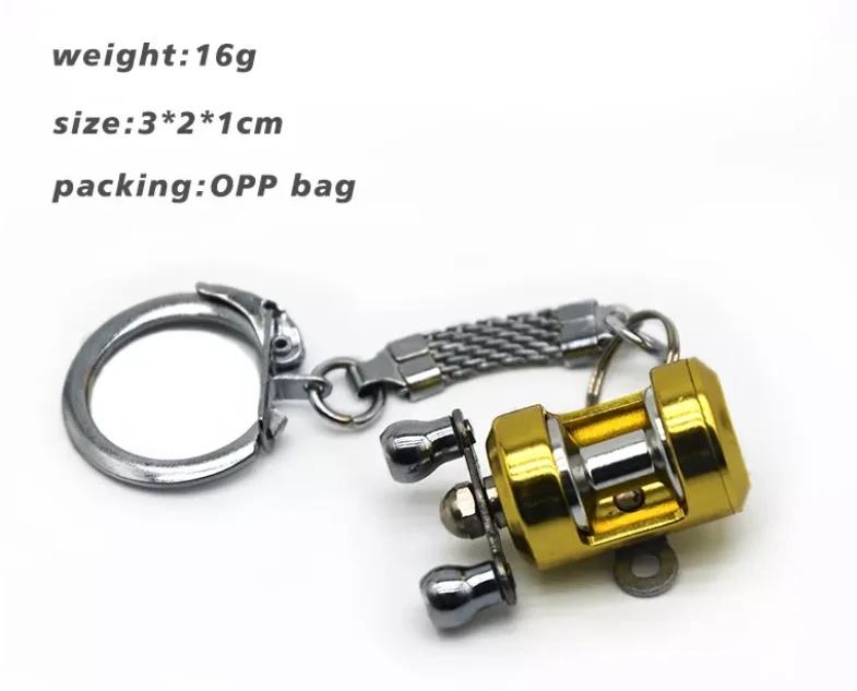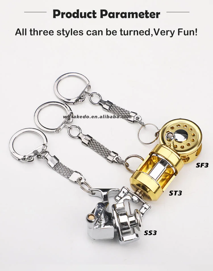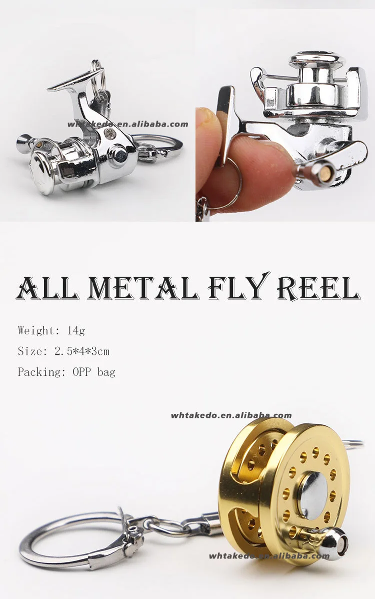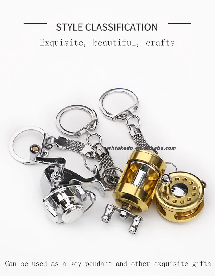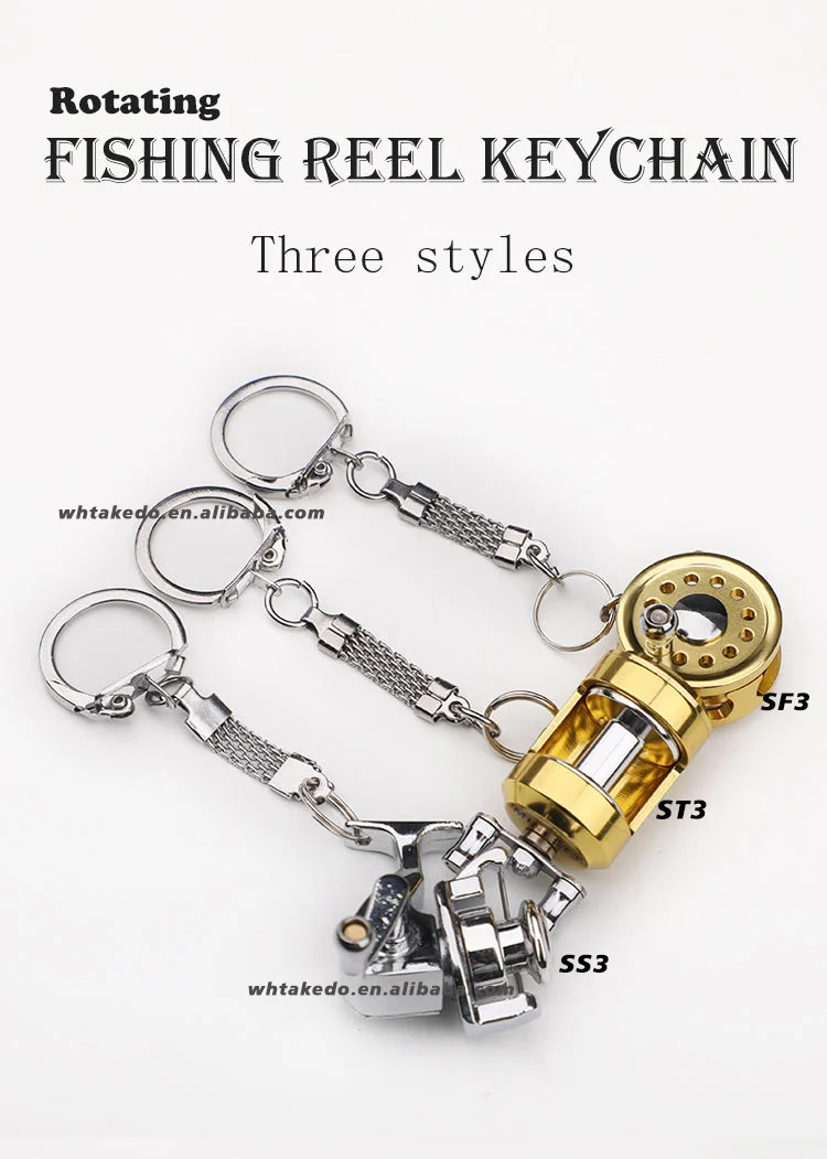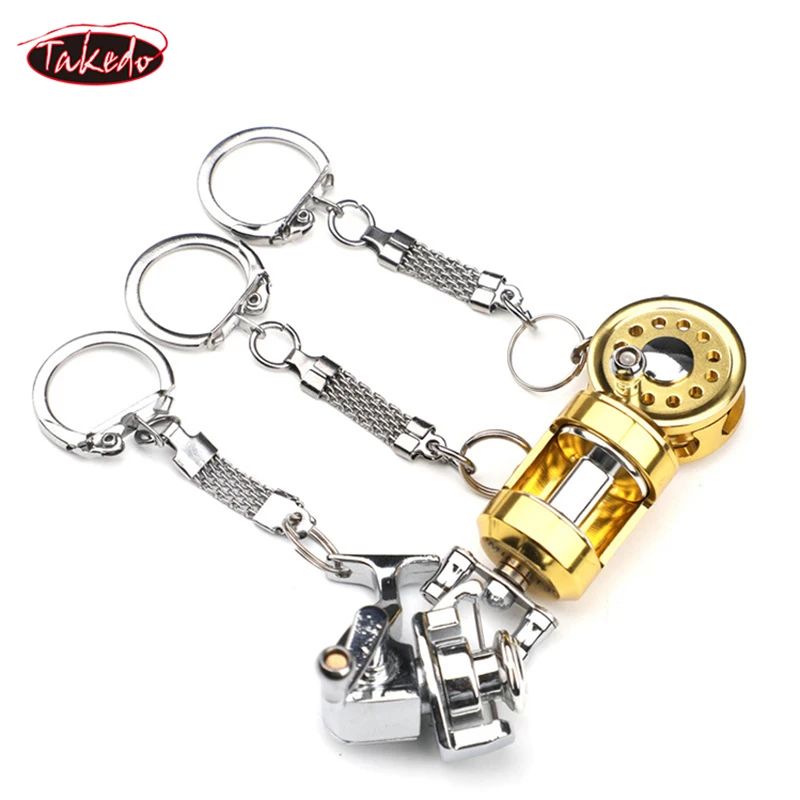 Llavero de carrete de pesca giratorio de Metal TAKEDO, llavero de coche para accesorios de coche, llavero con forma de carrete de pesca de fundición