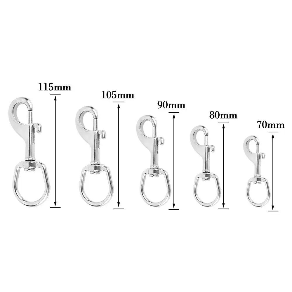 Nuevo con alta calidad Material: acero inoxidable 316 Tamaño: 70mm/80mm/90mm/105mm/115mm Estilo de hebilla: Gancho de una sola cabeza/gancho de doble cabeza Cantidad: 1 unidad Proceso de forjado de acero inoxidable 316 (sin fundición) 1. Los siguientes sujetadores probados son todos de fuerza de ruptura estática sin datos de fuerza de ruptura instantánea dinámica. El entorno exterior es complejo y el aparejo de soporte es diferente. No utilice nuestros sujetadores para trabajos peligrosos o que impliquen seguridad personal. Prueba. 2. La superficie del proceso de forjado forjará marcas, ligeros golpes, etc., incluso si la máquina está pulida. ¡Tenga en cuenta! El paquete incluye: 1 llavero de acero inoxidable Aviso: 1,1 cm=10Mm=0,39 pulgadas. 2. Permita un error de 1-2MM debido a la medición manual y asegúrese de que no le importe antes de realizar el pedido. 3. Por favor, comprenda que los colores pueden existir aberraciones cromáticas debido a la diferente colocación de las imágenes.