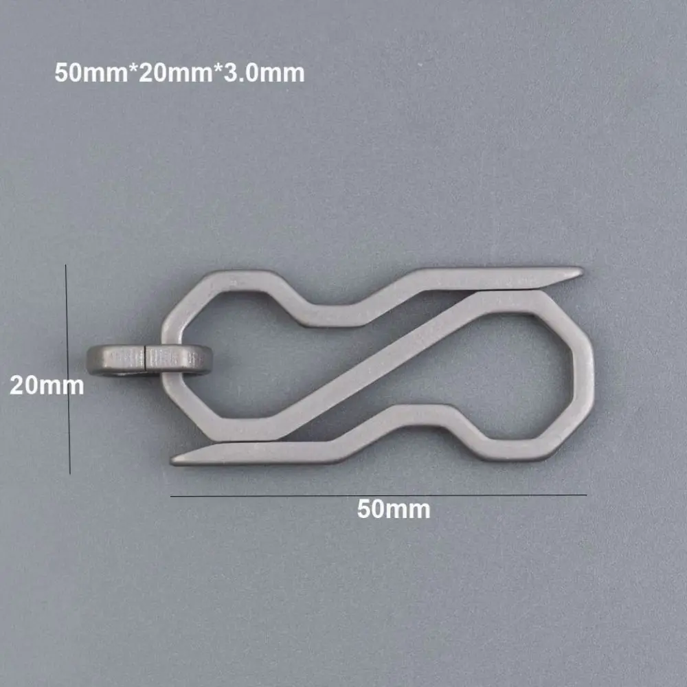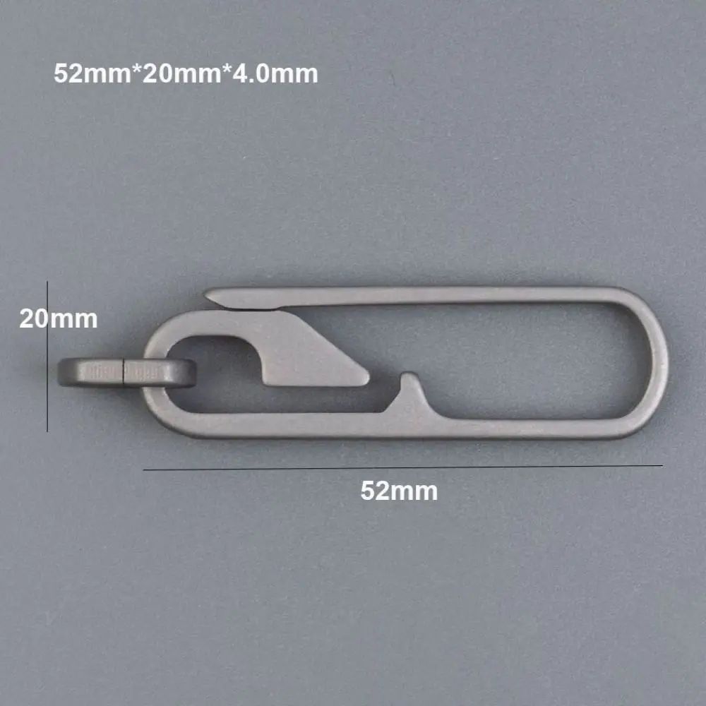 A titanium alloy keychain that can be clipped on the belt and used directly. The two sides can be exchanged arbitrarily, which is easy to use.