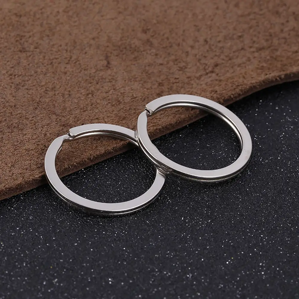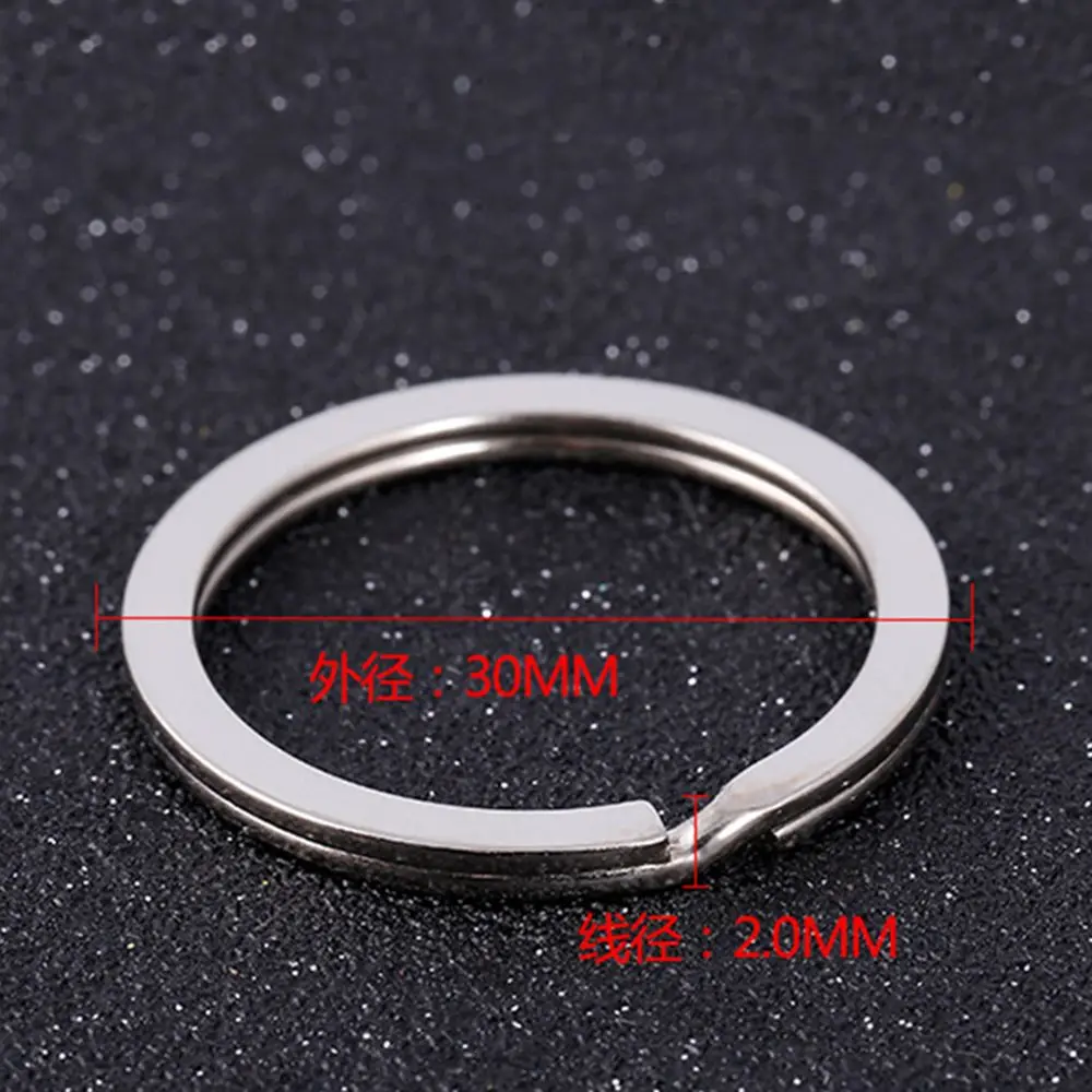 Diámetro del anillo: 30mm Material: metal Tipo: anillo plano Especificación: 2,0x30mm Color: color níquel Uso: Anillo para bolso, accesorios para llaves Características: duradero, proceso de chapado, portátil El paquete incluye: 10 llaveros de 3,