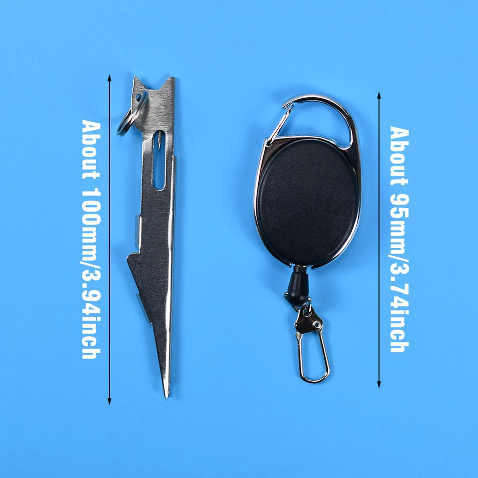 Llavero retráctil, herramienta para atar nudos rápidos, línea de pesca con mosca, Tyer con gancho, limpiador de ojos, equipo de pesca plateado, removedor de anzuelos