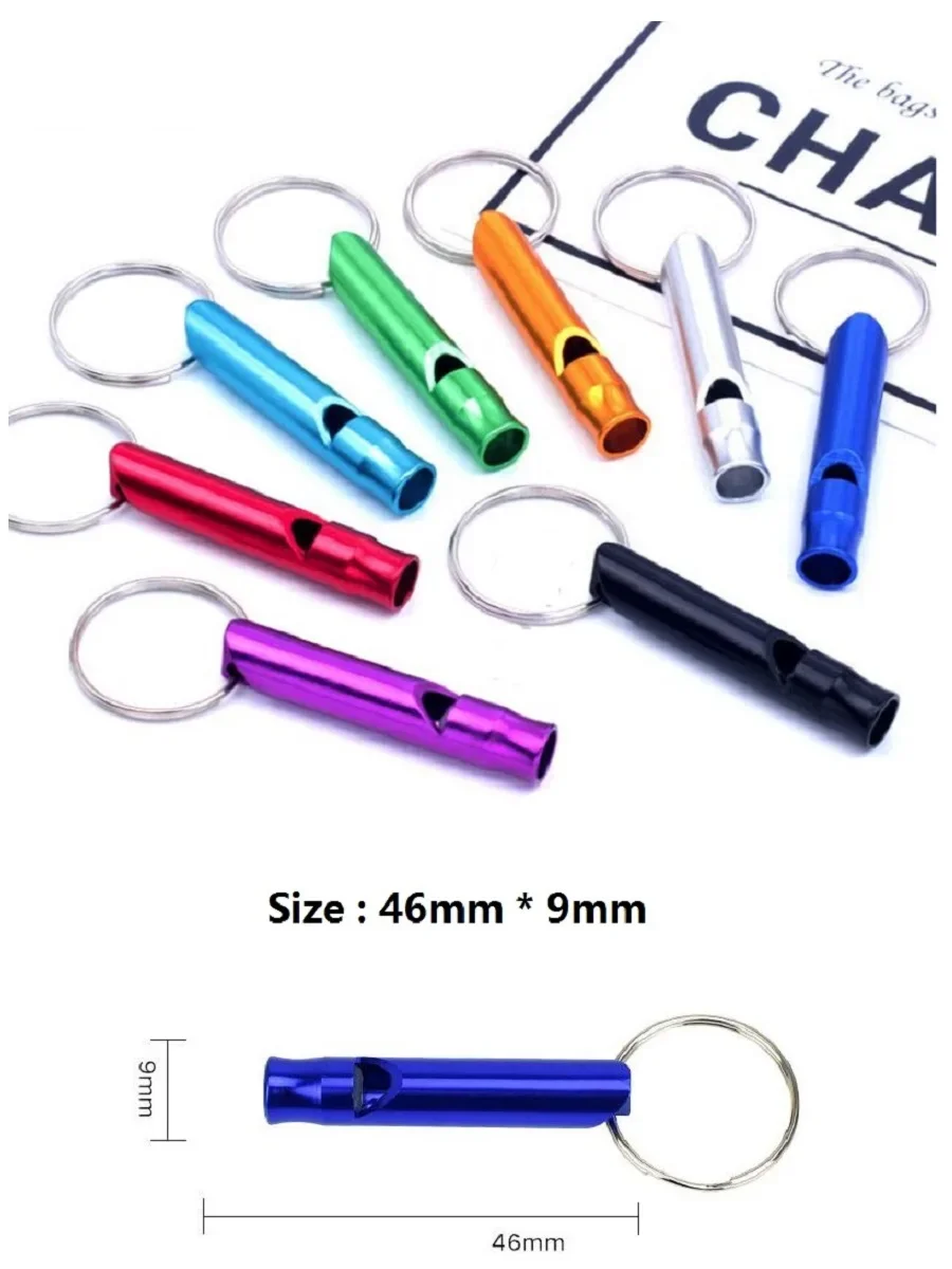 Barato silbato llavero autodefensa al aire libre multifuncional Metal aluminio SOS Primeros Auxilios silbato llavero