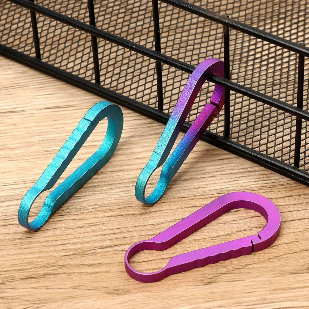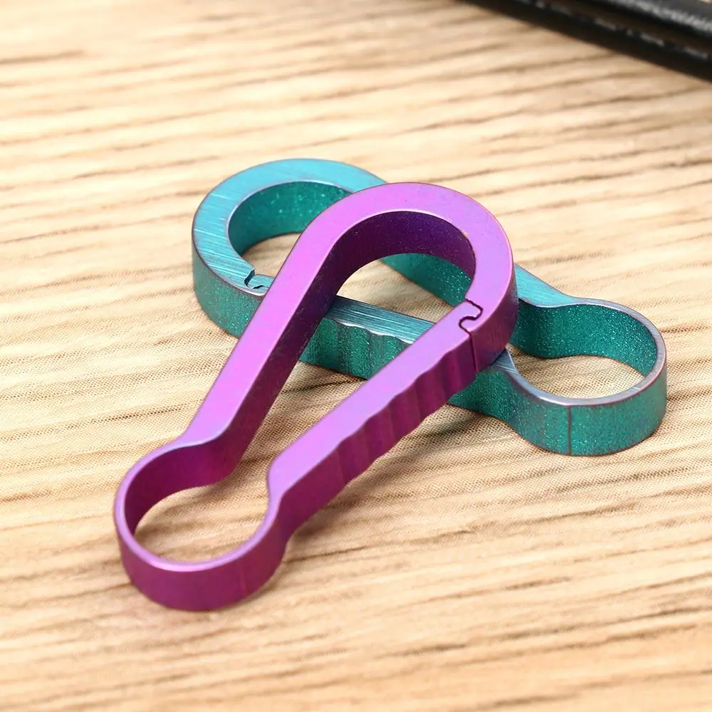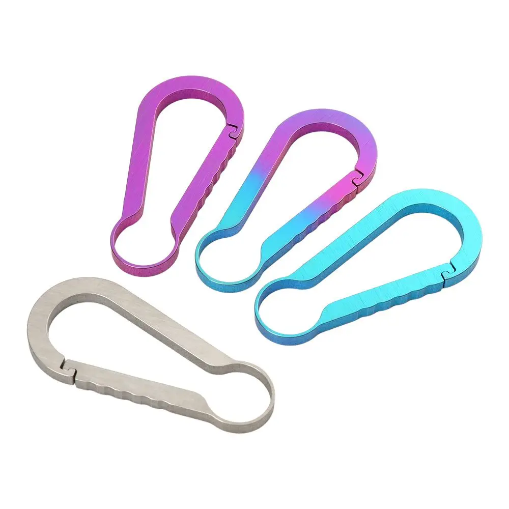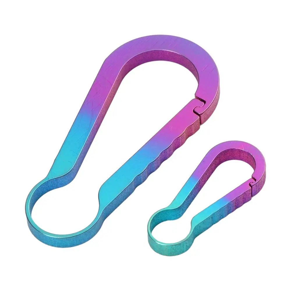 Brand new with high quality Material: Titanium Alloy Color:Silver,Multicolor,Purple,Green Size:32*18mm/60*27mm Weight:2.8g/9.5g Quantity:1pc Features: Titanium Keychain Titanium Quick Hook Carabiner Titanium Material Outdoor EDC buckle Portable, simple and lightweight Description: Made of titanium alloy, durable, wear-resistant Spring gate with anti-slip threaded design for quick operation Big head hanging part can 1cm keychain, clip, or belt Small head hanging part can 4mm keychain, clip, or belt Multiuse tool for indoors or outdoor camping, hiking, backpacking, fishing, hunting, travel, etc. Package include: 1pc Keychain Buckle Notice: 1.1cm=10mm=0.39inch. 2.Please allow 1-2mm error due to manual measurement and make sure you do not mind before ordering. 3.Please understand that colors may exist chromatic aberration as the different placement of pictures.