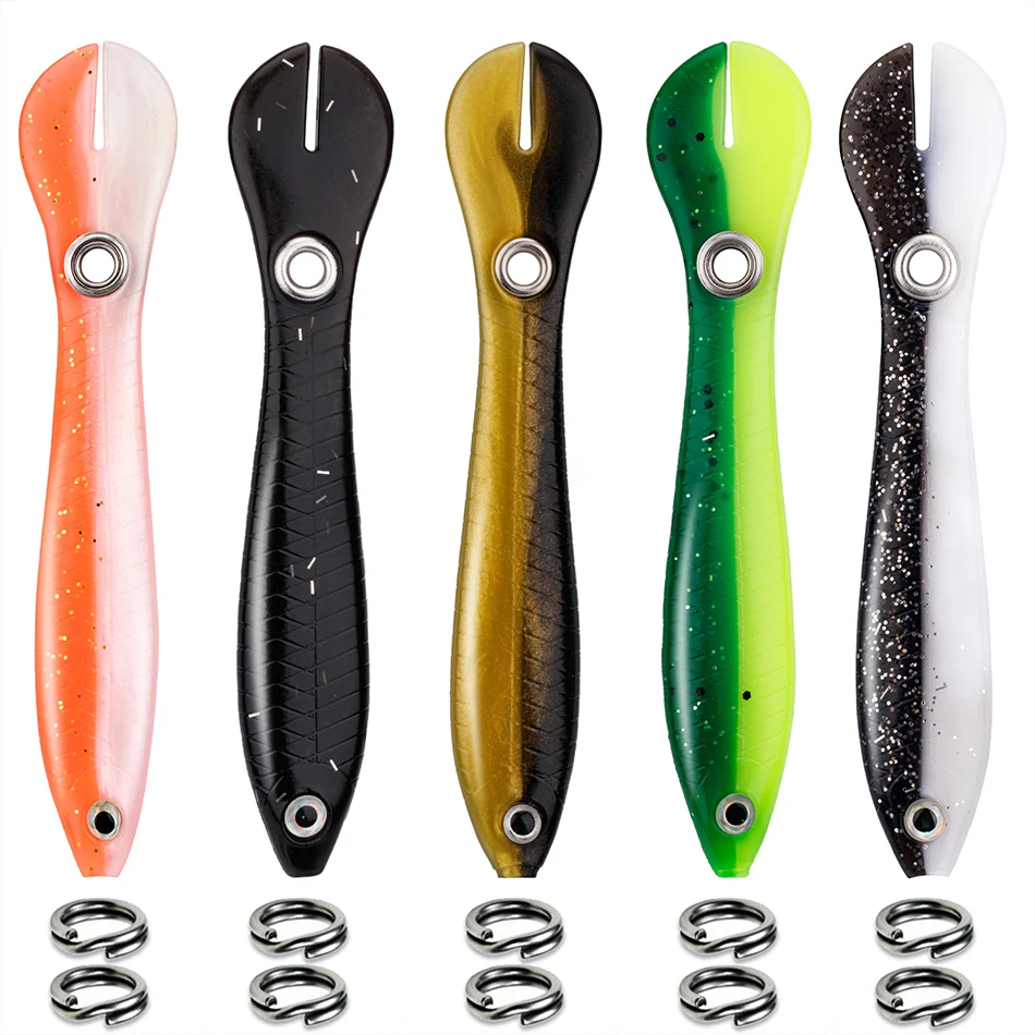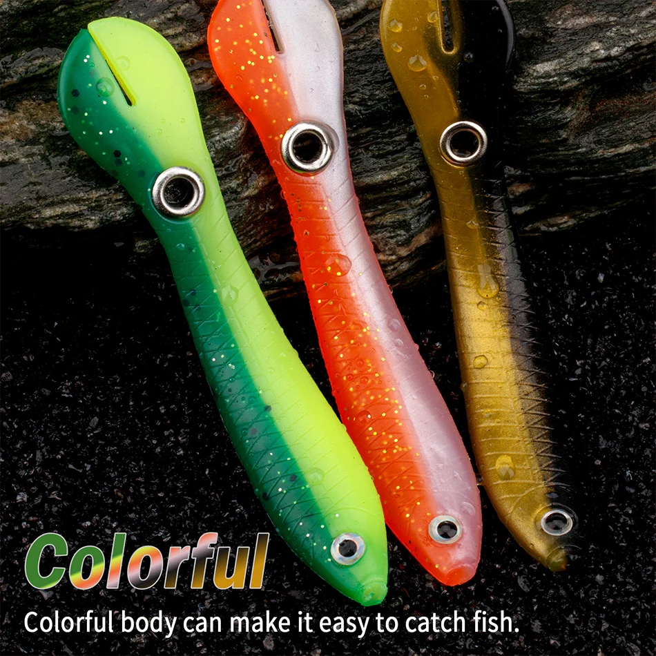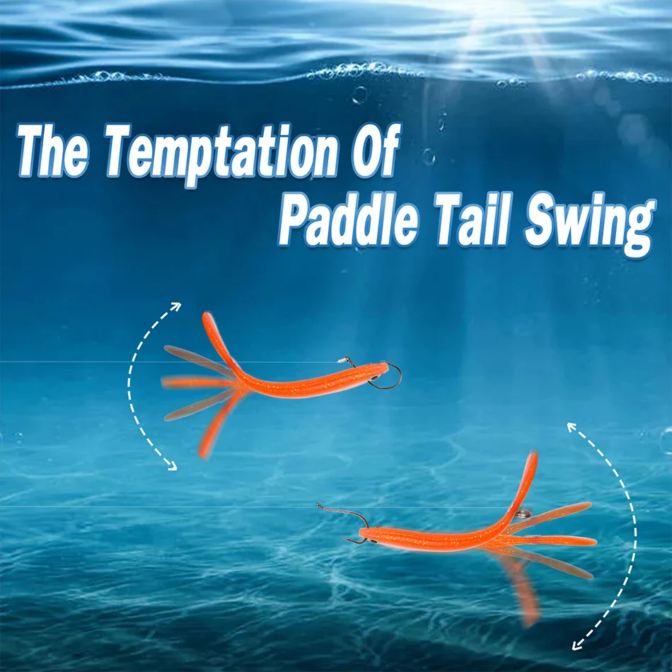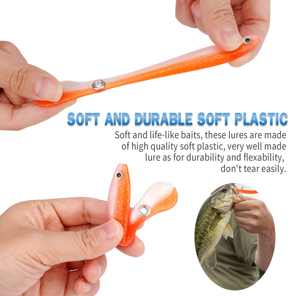 🐟Pesca lubina▶El diseño de cola de paleta con material súper suave brinda una acción de natación extremadamente atractiva para atraer peces hambrientos. Imita de cerca la apariencia y la acción de natación de un pez cebo real, exactamente lo que los peces hambrientos no pueden ignorar.