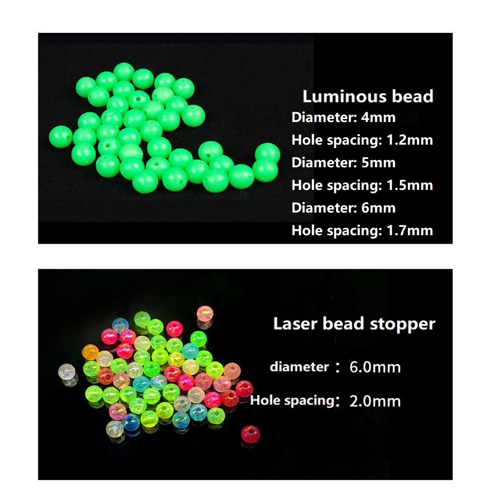 Lote de 100 unidades de cuentas de ojo de pez/luminosas/láser para señuelo de anzuelo triple DIY, aparejos de pesca de lubina, accesorios de carpa