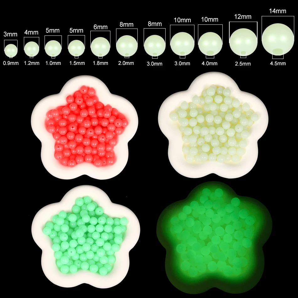 100 unid/bolsa flotadores de pesca cuentas luminosas 3mm-12mm Bolas brillantes de luz Vobler silicona lubina cebo señuelo de pesca ir a pescar en invierno,