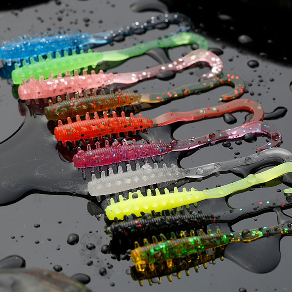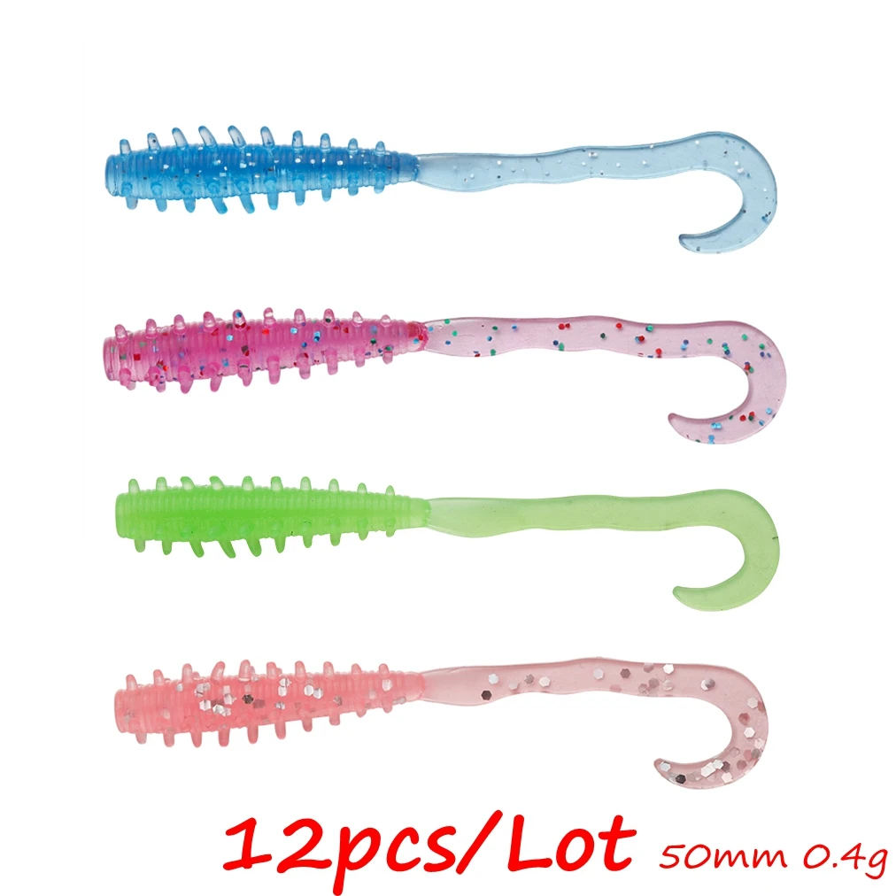 12 unids/lote pesca señuelo 50mm 0,4g AJING pequeña sola cola aguja cola señuelo suave Rockfish cebo Artificial