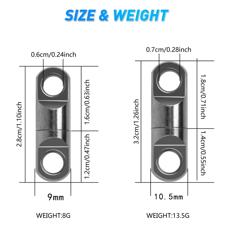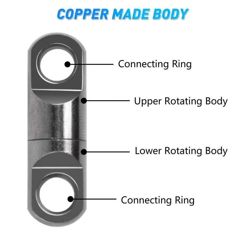 Cantidad: 15 Uds. Material: latón Color: negro Prueba de fuerza: 550LB, 610LB Característica: Material de latón, duradero, anticorrosión Rotación de alta resistencia, alta velocidad Conector de pesca de caza mayor, fácil de usar Nota: Puede haber algunos errores de medición, no se preocupe. Gracias