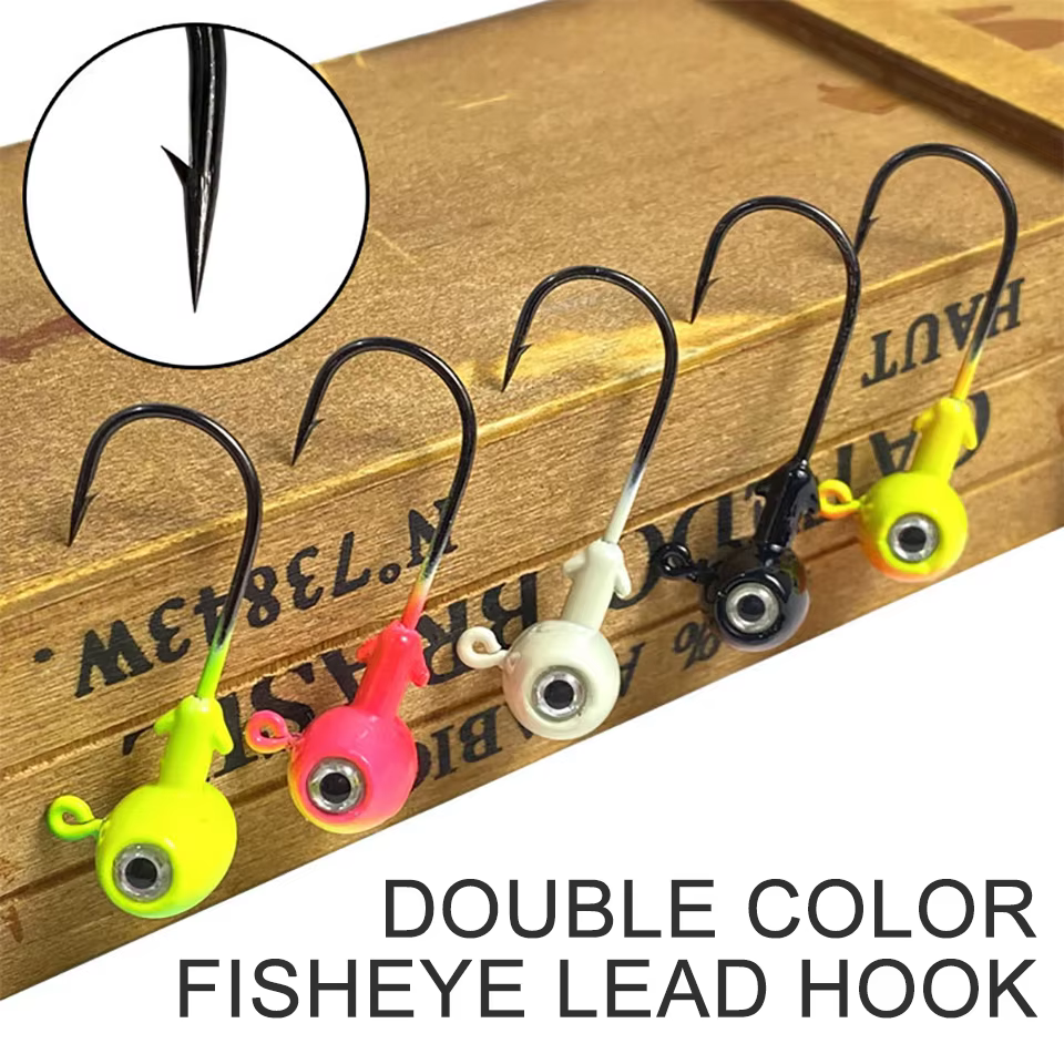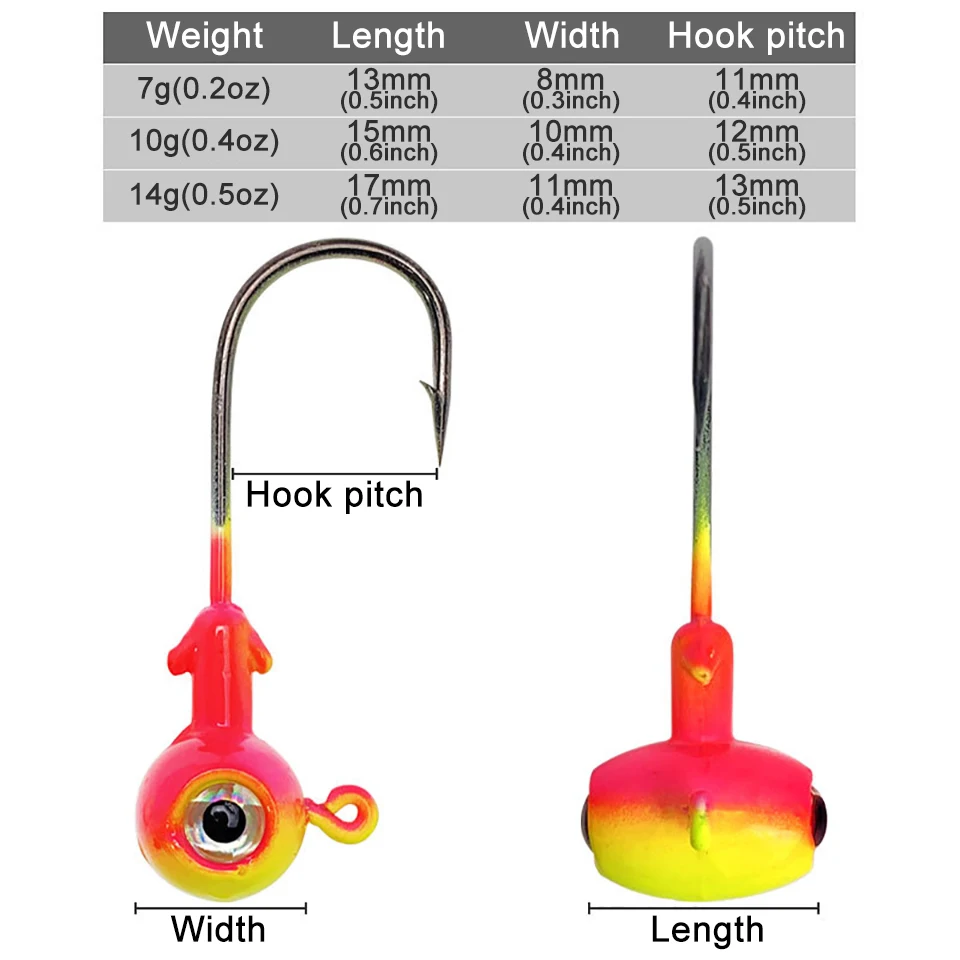 5 unids/lote ojos de pez 3D 3,5g/5g/7g/10g/14g anzuelo de cabeza de plomo anzuelo de púas aparejos de pesca traje para cebo de gusano suave barco oceánico