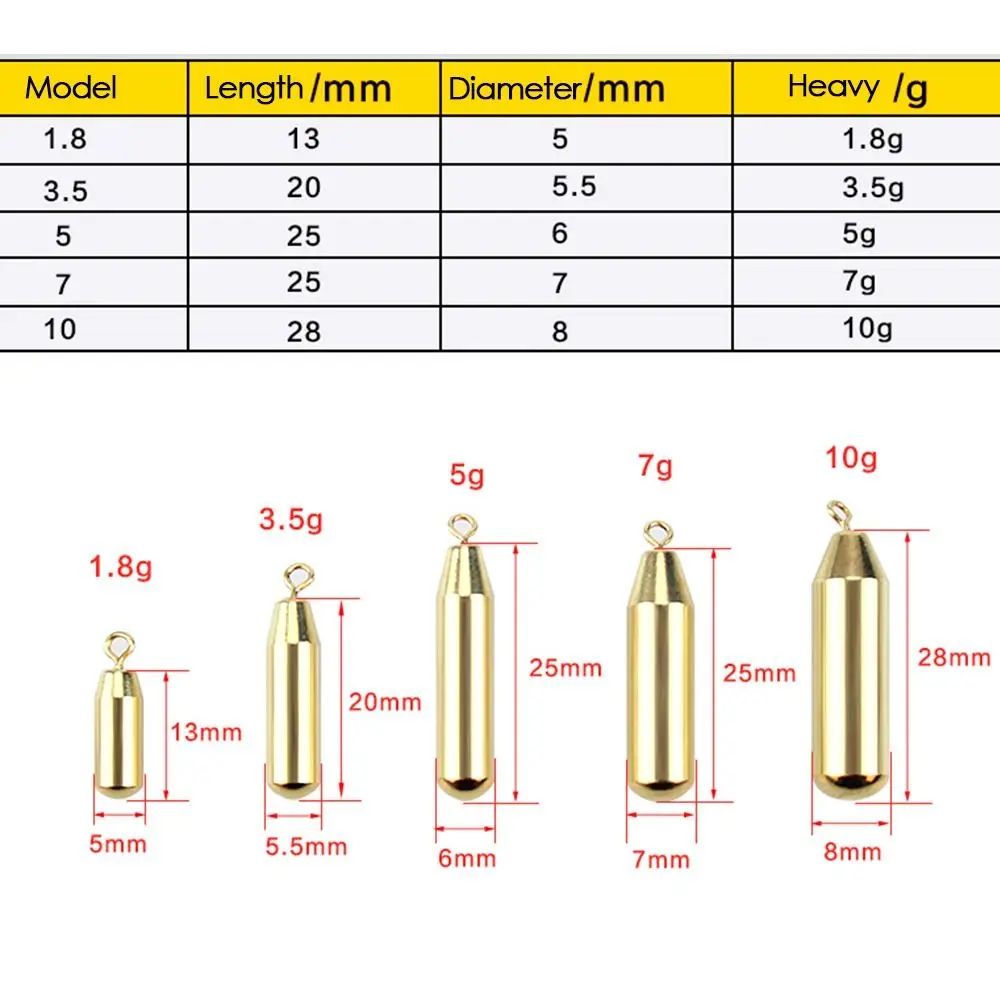 Maravillosa herramienta de pesca para los amantes de la pesca No dañe el pez ni la línea. Fácil de usar Posición: Pesca en barco oceánico Longitud de la varilla: 3,0 m Material: aleación Tipo de accesorios: plomo Número de modelo: cobre Tamaño: 10g y 7g y 5g y 3,5g y 1,8g uno de cada uno Especificación: Nuevo y de alta calidad. 1. Hecho de material de alta calidad, resistencia a la corrosión y uso duradero. 2. Actúa como el papel de agregar pesos para el grupo de pesca, gran peso y diseño suave puede entrar en el agua fácil y rápidamente. 3. La forma única puede reducir la resistencia del aire y lanzar más lejos, hundiéndose bien y reduciendo la resistencia al agua y no dañando la línea. 4. Conexión fácil y útil. Hay diferentes pesos disponibles, más conveniente que cambiarlos. 5. Se puede conectar hilo de pescar, Gran accesorio para pescadores. El paquete incluye: Caída de plomo de pesca de cobre de 5 piezas.(10g y 7g y 5g y 3,5g y 1,8g uno de cada uno)