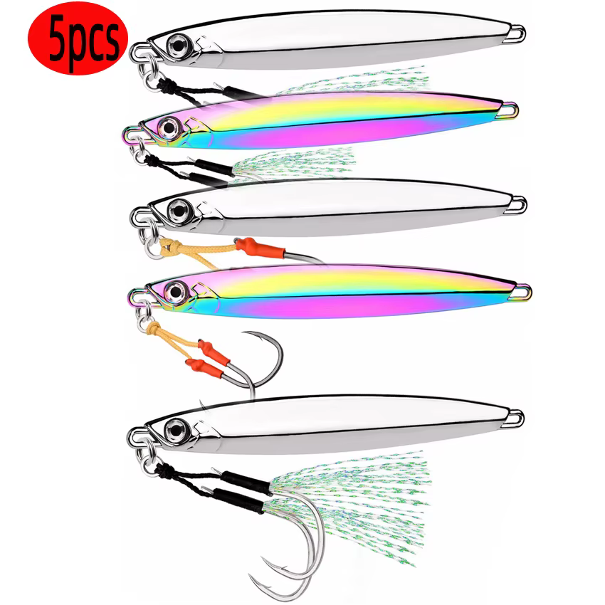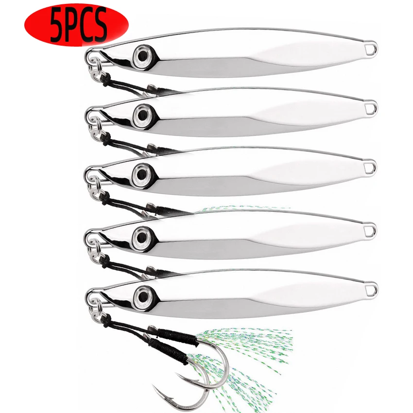 Lote de 5 unidades de pesca en el mar, plantilla lenta, cuchara de Jigging de Metal, ojo 3D, cebo Artificial, plantilla de pesca en barco, señuelos de pesca súper duros