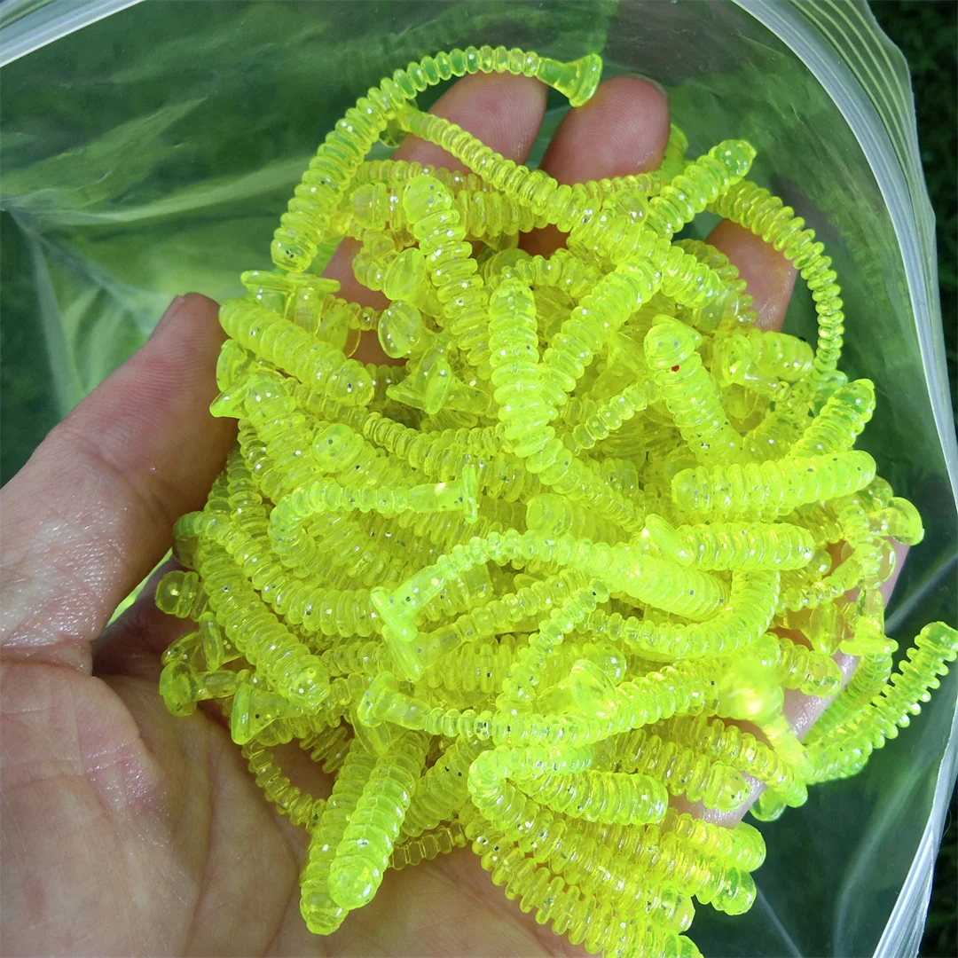 Lote de 50 señuelos blandos de silicona, cebos de gusanos, 4,5 cm, 0,4g, Jigging, Wobblers, cebos de pesca artificiales para aparejos de carpa y lubina