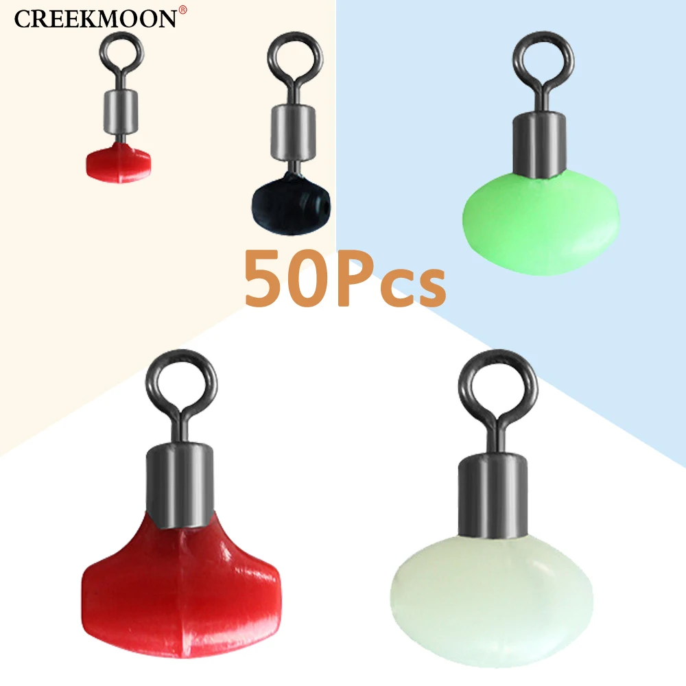Lote de accesorios de pesca, lote de 50 unidades de eslabones de línea cruzada con cuentas verdes luminosas, polea en forma de T, aparejo deslizante con conector