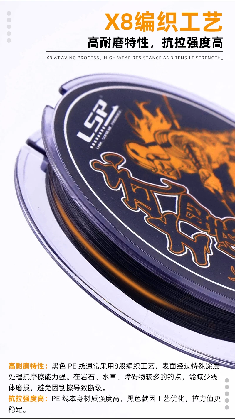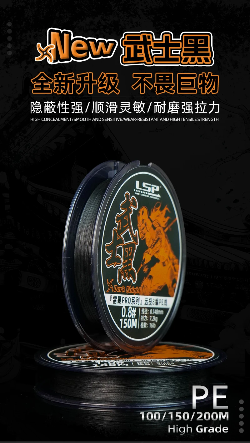 LSP 2025 New Drak Knight X8 PE Fishing Line Braided 8 Strands 100m/150m/200m 13-30lb Highly Concealed Multifilament Line
