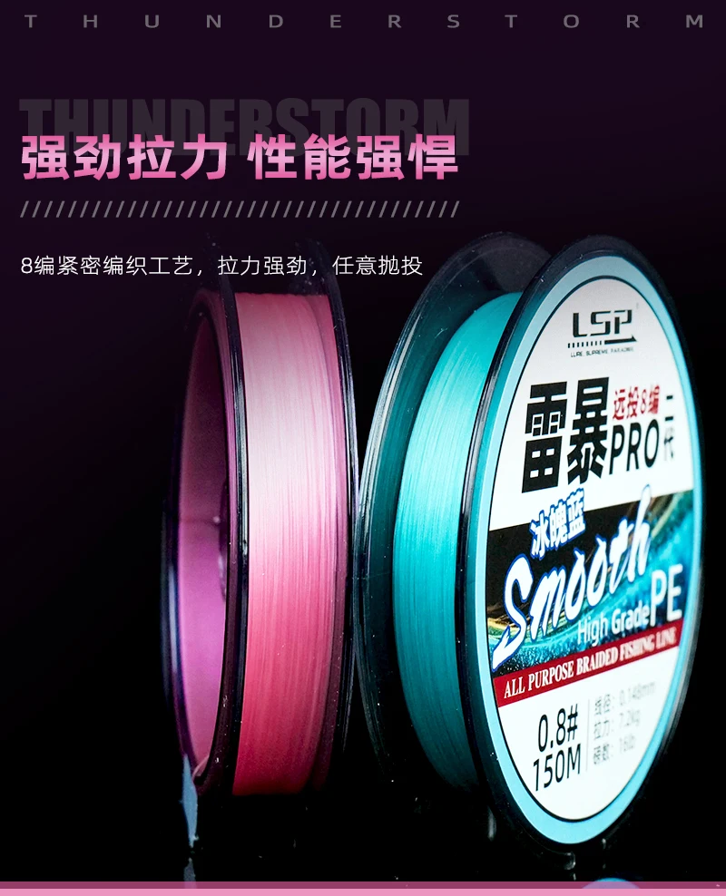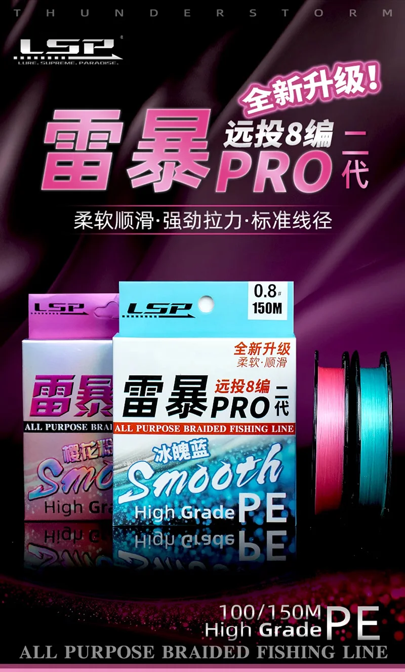 LSP 2025 nuevo Thunderstorm Pro 2 PE línea de pesca trenzada 8 hebras 100/150M línea multifilamento para agua de mar agua dulce