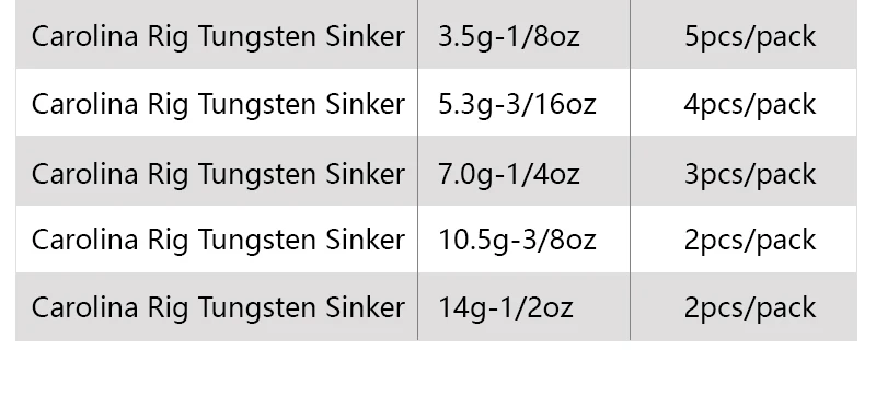 Plomada de tungsteno LSP Carolina Rig 1/8 - 1/2 Oz peso de pesca de lubina 3,5-14g accesorios de señuelo artículos de pesca para pesca de invierno