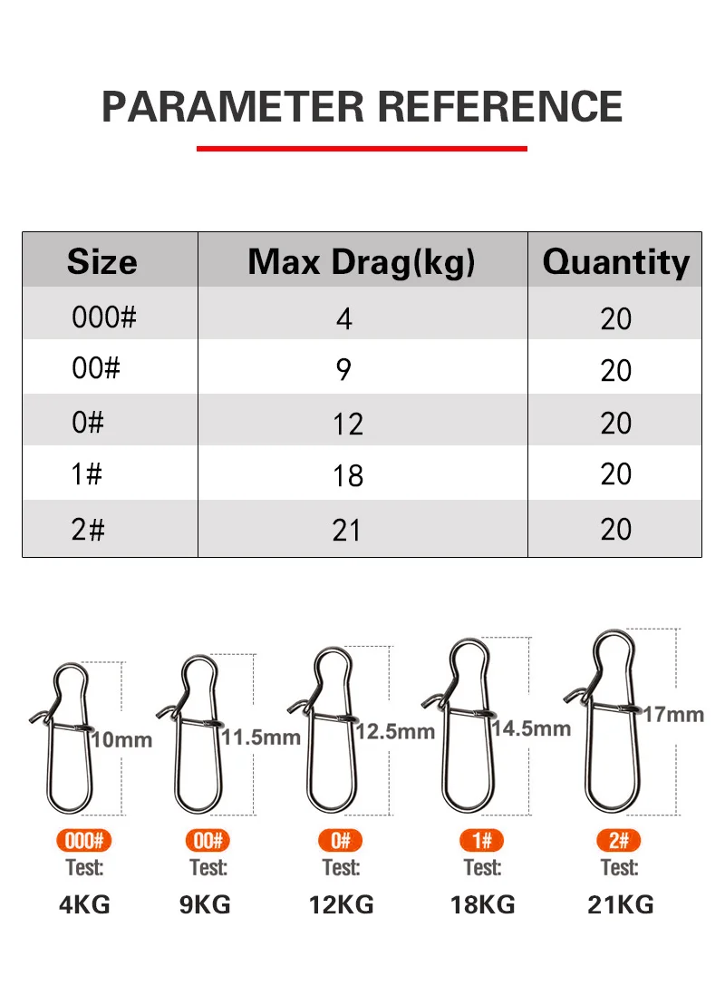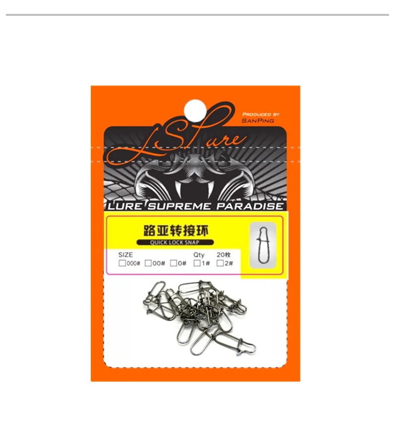 LSP-gancho de acero inoxidable con cierre giratorio, anillo sólido de seguridad, Conector de gancho de pesca, accesorios de pesca, 20 unids/lote por paquete