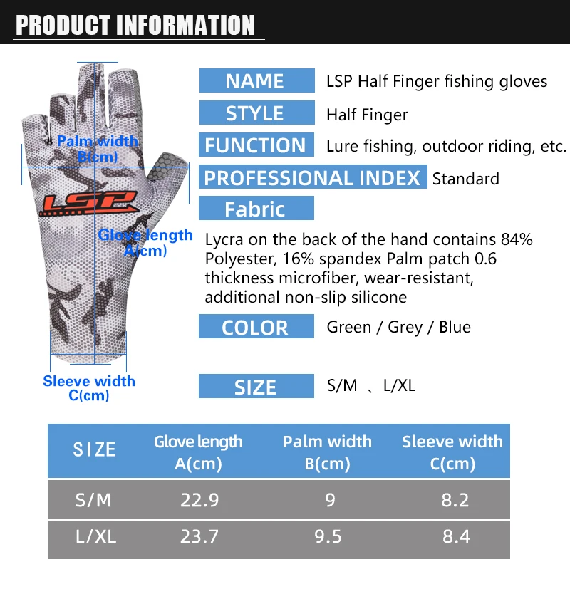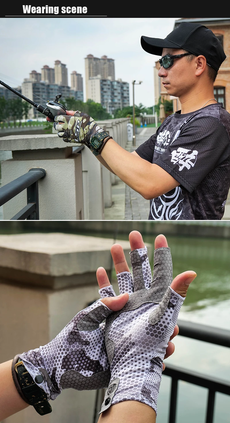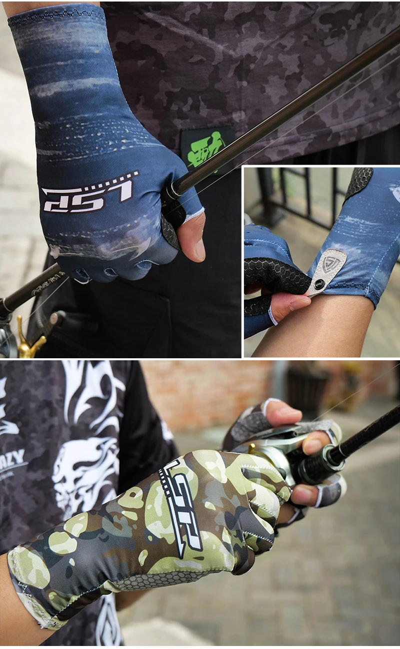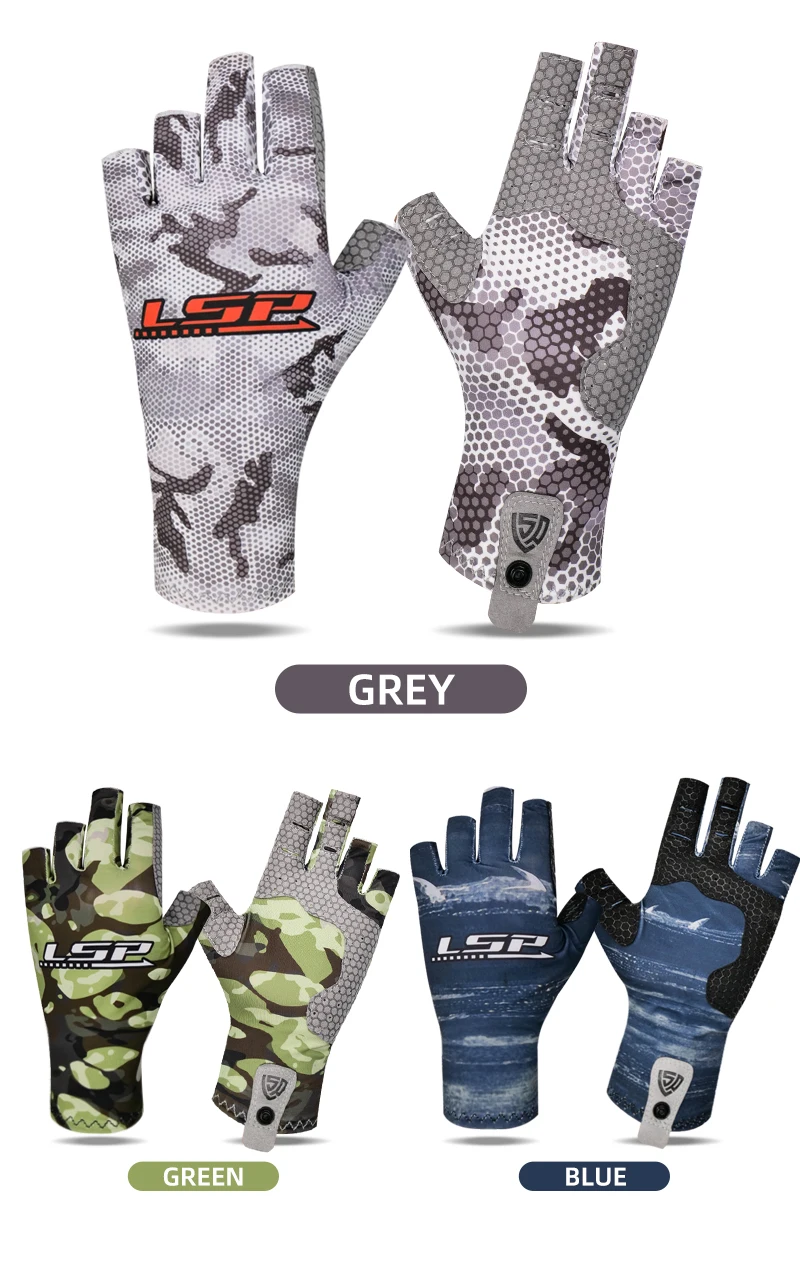 Guantes de Pesca LSP para hombre, ligeros, medio dedo, protección solar, doble cara, transpirables, antideslizantes, para exteriores, Pesca, guantes de Pesca