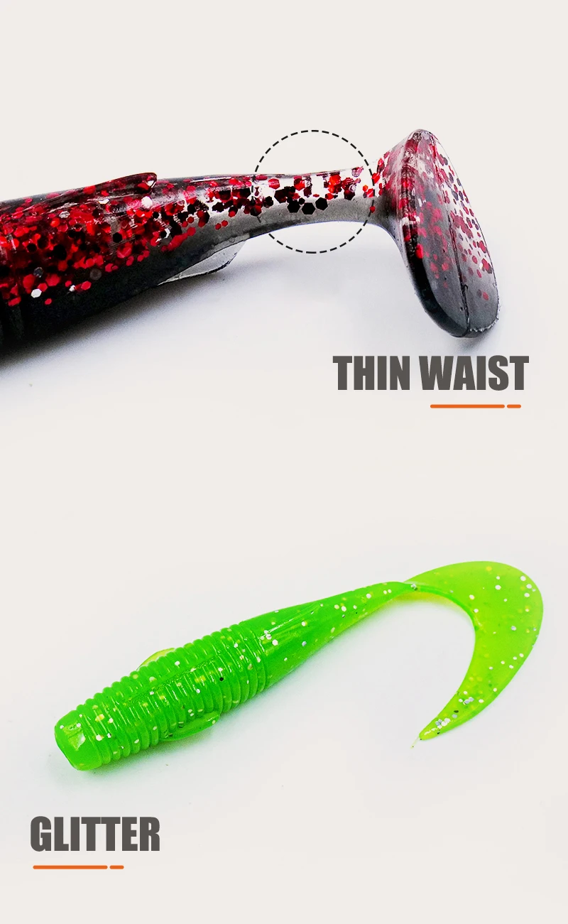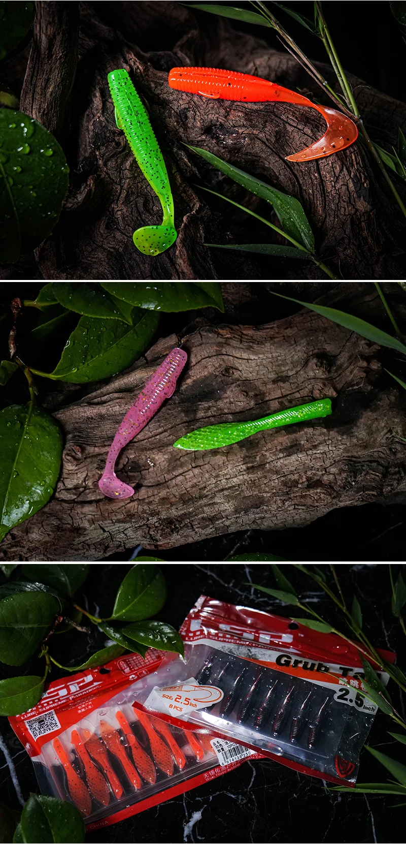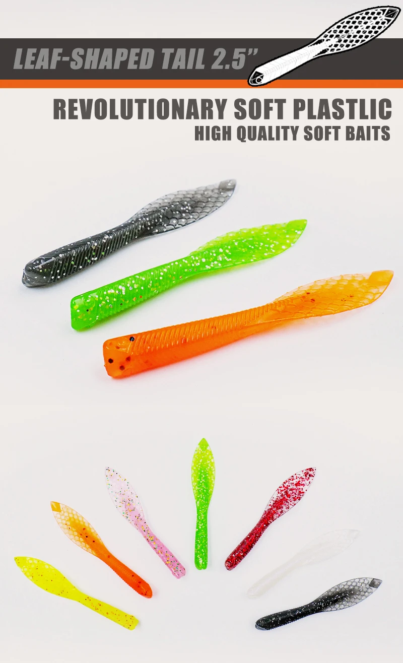 LSP 8-12 Uds./lote señuelo de pesca suave 2-2,5 pulgadas señuelos de cola de paleta señuelos de gusano de larva para lubina trucha carpa NED Rig Drop Shot Jig Heads