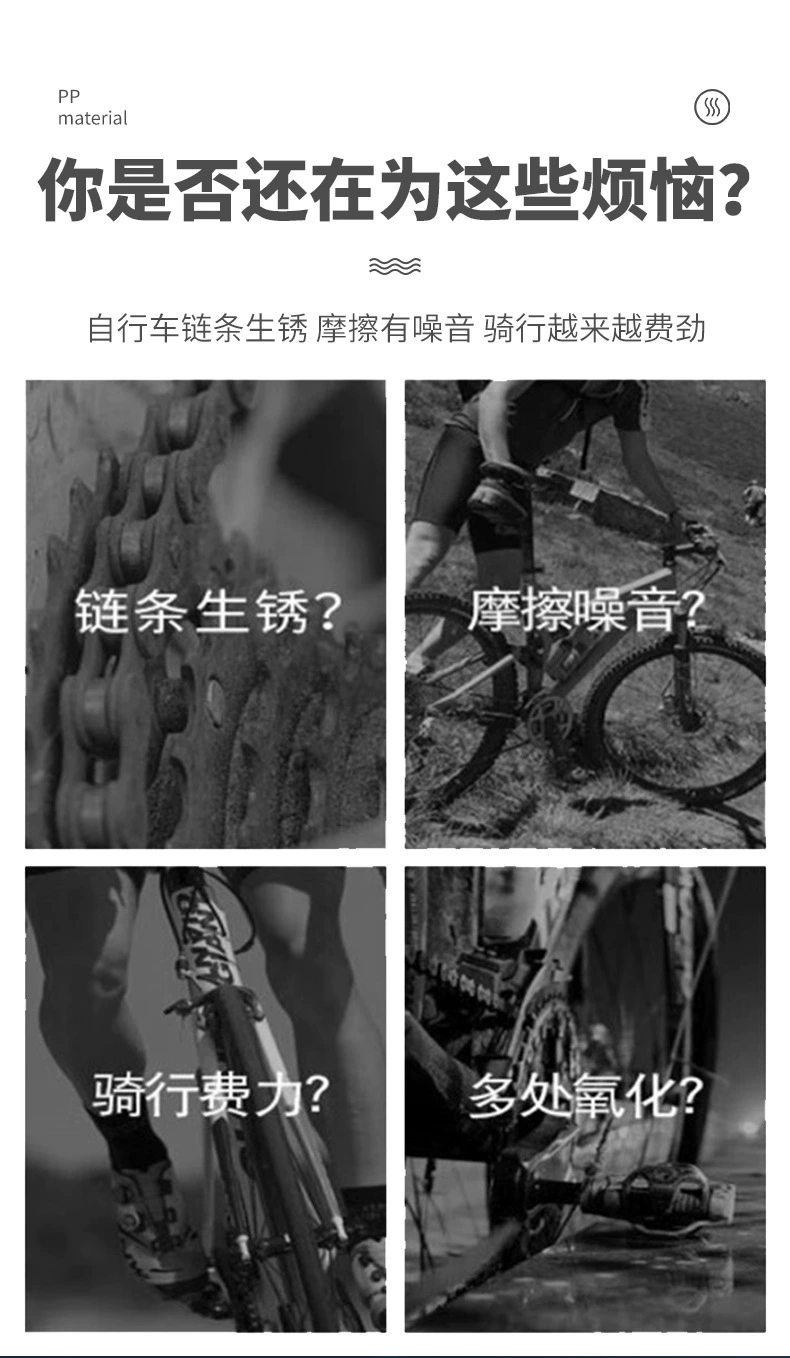 4.Uso amplio: ya sea una bicicleta de montaña o de carretera, este lubricante se puede usar en volante, cadena, tornillos de transmisión y más.Mantiene y protege eficazmente su bicicleta del óxido y el desgaste.