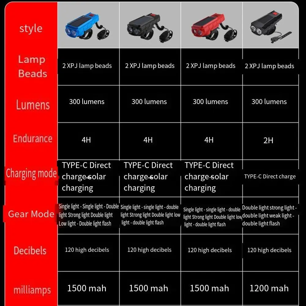 1.Three in one, the perfect combination of bicycle headlight, horn and flashlight.