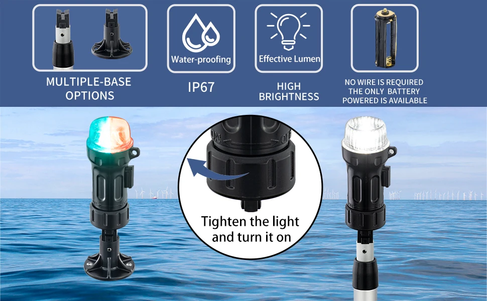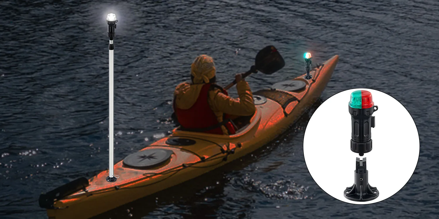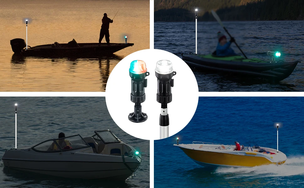 (1) Iluminación versátil: este kit de luces de navegación portátil cuenta con una luz de anclaje telescópica para embarcaciones, kayaks y otras embarcaciones, que proporciona una iluminación completa en blanco, rojo y verde para mejorar la visibilidad y la seguridad en el agua.