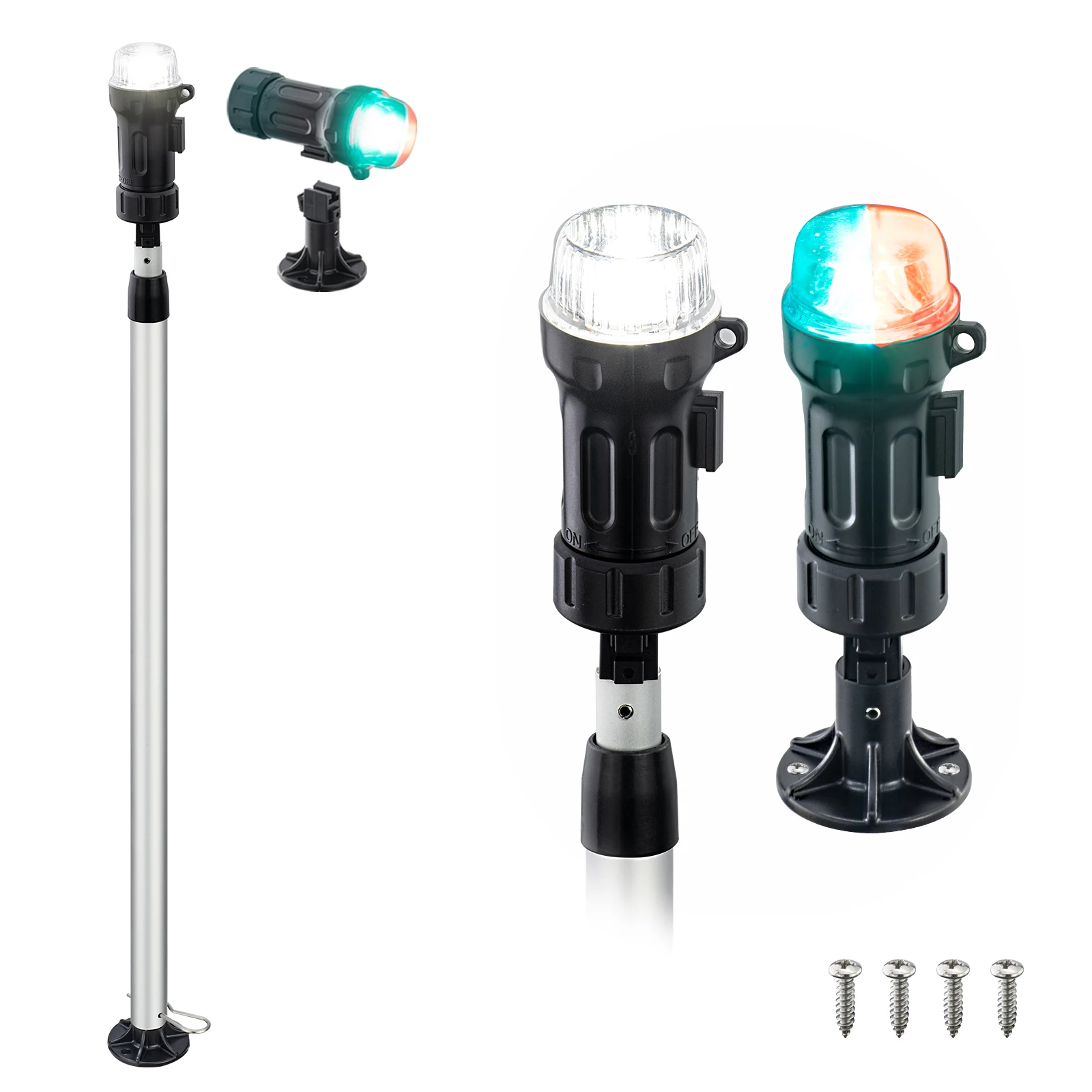 Luces de navegación para barcos, kit de luces de navegación telescópica de 30-52,4 pulgadas, blanco/rojo/verde
