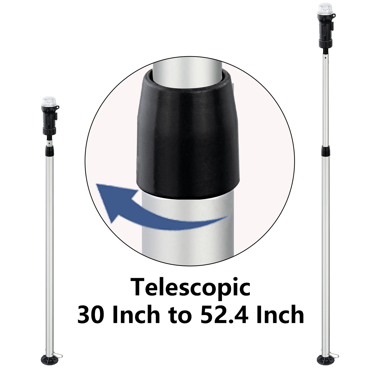 (2) Altura ajustable: el poste telescópico se extiende de 30 a 52,4 pulgadas, lo que le permite personalizar la altura para una visibilidad óptima en varios tamaños de embarcaciones.