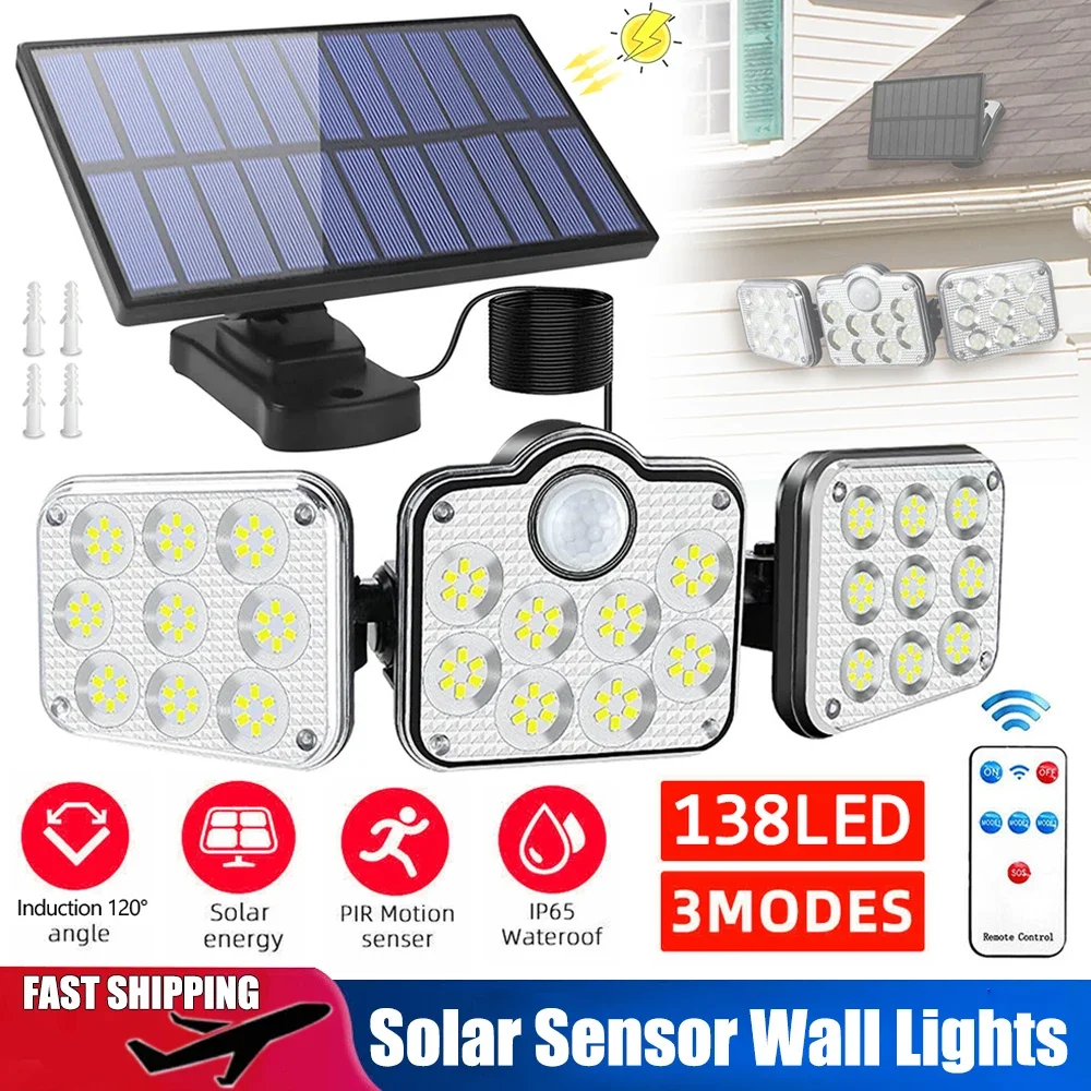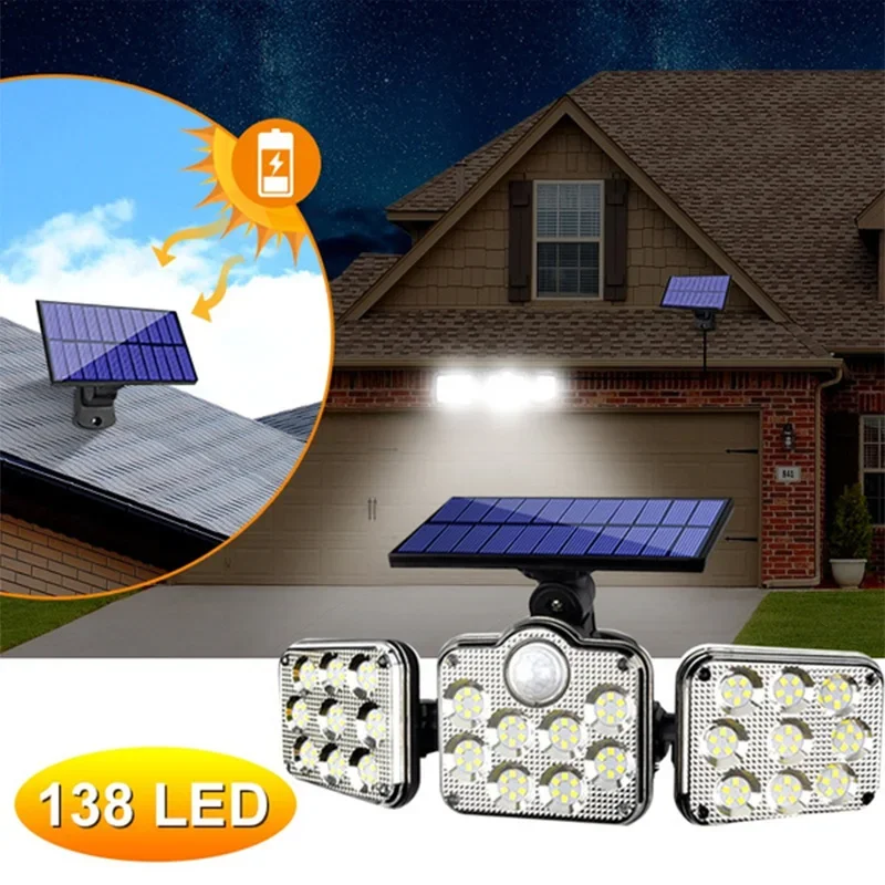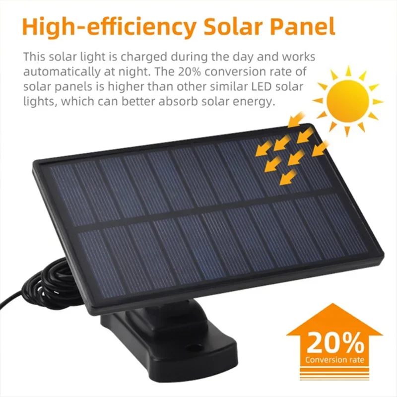 【LUCES DE SEGURIDAD SOLAR ULTRA BRILLANTES 】La luz del sensor de movimiento solar está equipada con 138 luces LED súper brillantes. Nuestro panel solar está hecho con silicio policristalino mejorado con una tasa de conversión de hasta el 20.5%.