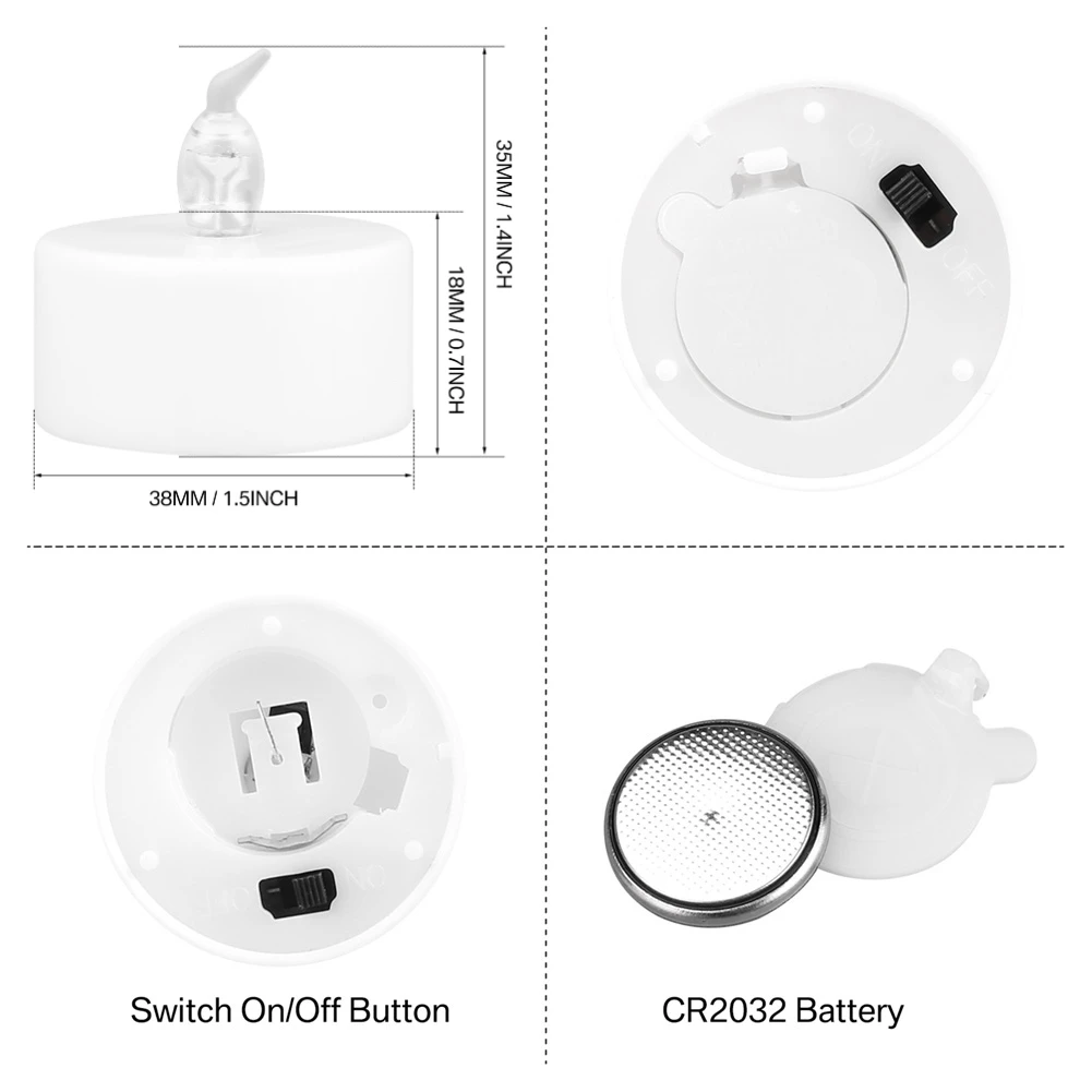 【 1 】LARGA DURACIÓN DE LA BATERÍA-El Tipo de luces de té LED A/C/D/E/F utiliza una pila de botón CR2032 que es muy eficiente y fácil de comprar en línea o en la tienda local. Dura unas 200 horas con una batería nueva. Estas baterías están incluidas.El Tipo de luces de té B/ LED utiliza pilas AAA. Estas pilas no están incluidas.El Tipo de luces LED G/H/I utilizan pilas AA. Estas pilas no están incluidas.El Tipo de luces de té LED J/K son recargables.【 2 】 El paquete realista de bolsa de valor de luz de té INCLUYE-3/6/12/24 luces LED sin llama.