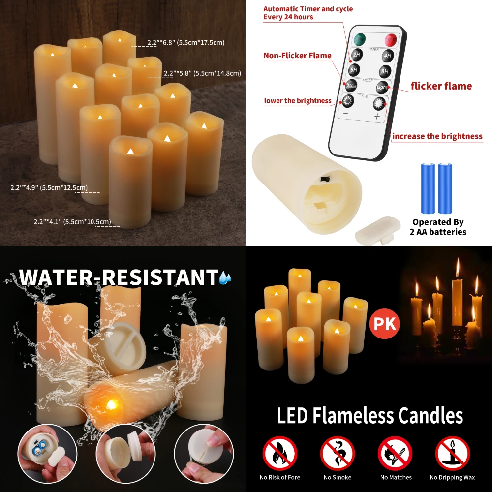 【 4 】 SEGURO Y SIN RIESGO DE INCENDIOS, SIN PROBLEMAS Y SIN FLAMAS-Las velas de la batería se pueden usar en decoraciones de Halloween, fiestas de Halloween, mesas, manteles y más dormitorios, salones, guaridas, baños, etc. Absolutamente no sin llama; sin goteo de cera, sin humo, sin fósforos.